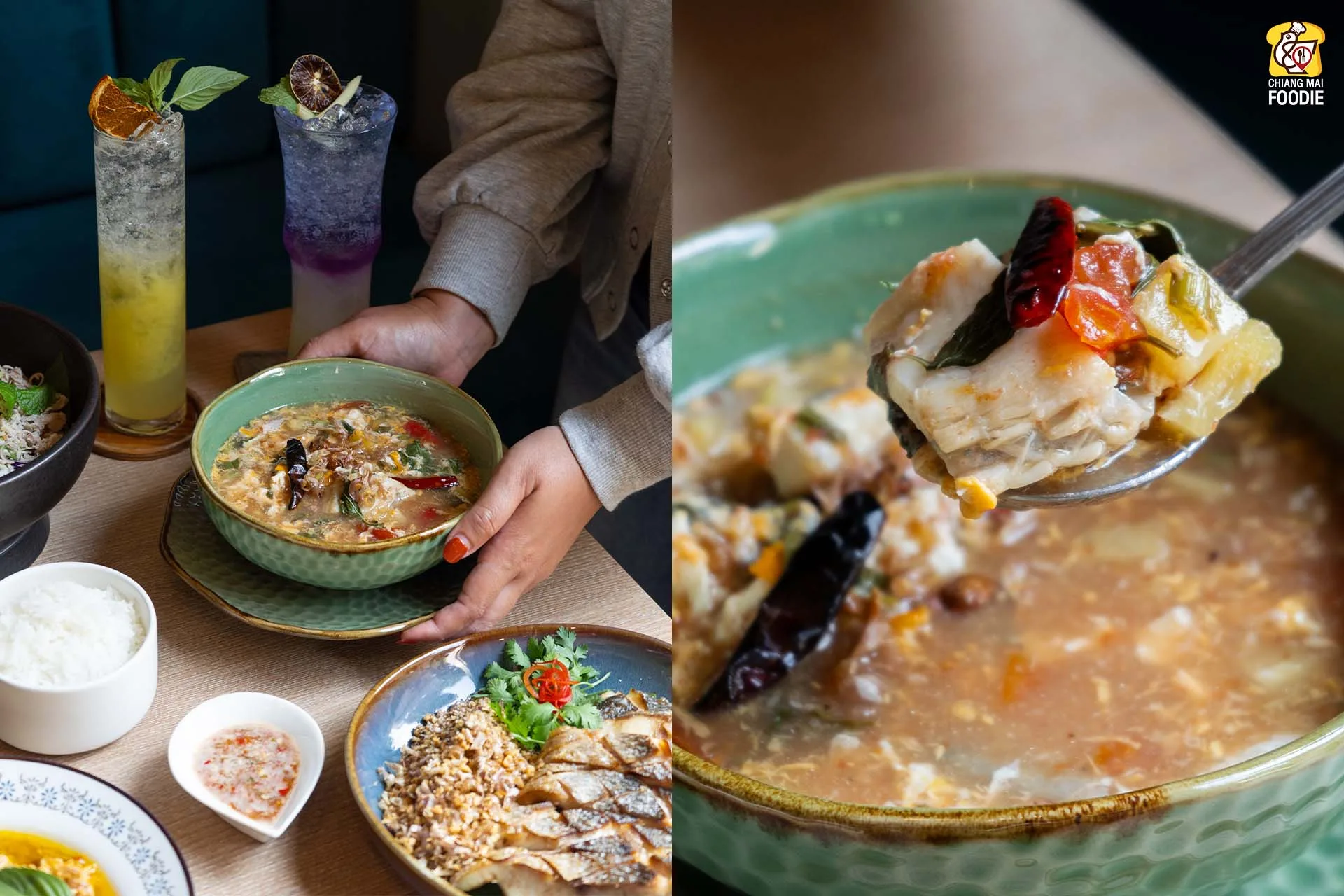 #ต้มลอมาจู เมนูหาทานยากทว่าเป็นซิกเนเจอร์ของที่ร้าน น้ำแกงที่มีสับปะรด มะเขือเทศและไข่ รสเปรี้ยวหวานสดชื่น