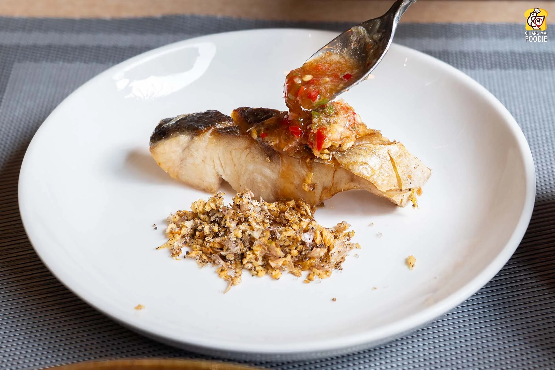 #ปลากุเลาทอดและน้ำจิ้มพริกเกลือ ฤดูกาลนี้ต้องปลากุเลาเบ็ดที่ทางร้านนำมาแดดเดียวเองเพราะงั้นมั่นใจเรื่องความสะอาด อันที่จริงแล้วเรื่องการนิยมทานปลานี่เค้ามีหลายชนิดนะ ถึงกลายมาเป็นเมนูพิเศษประจำแต่ละเดือน อาจจะมีจำพวก ปลาเก๋าถ่านน้ำลึก