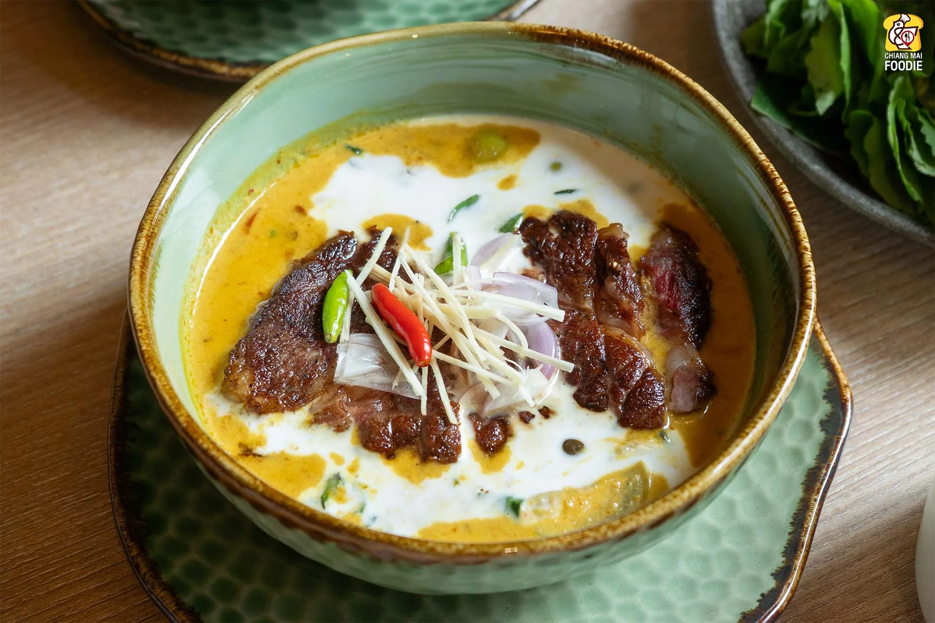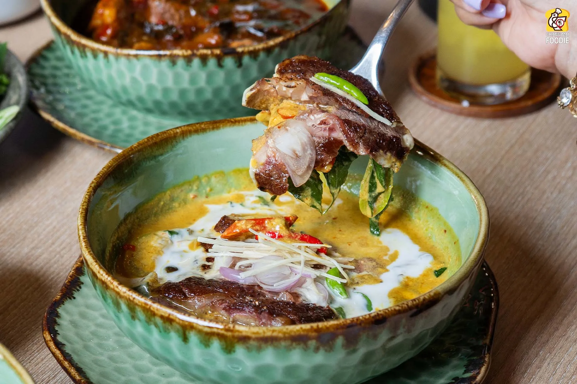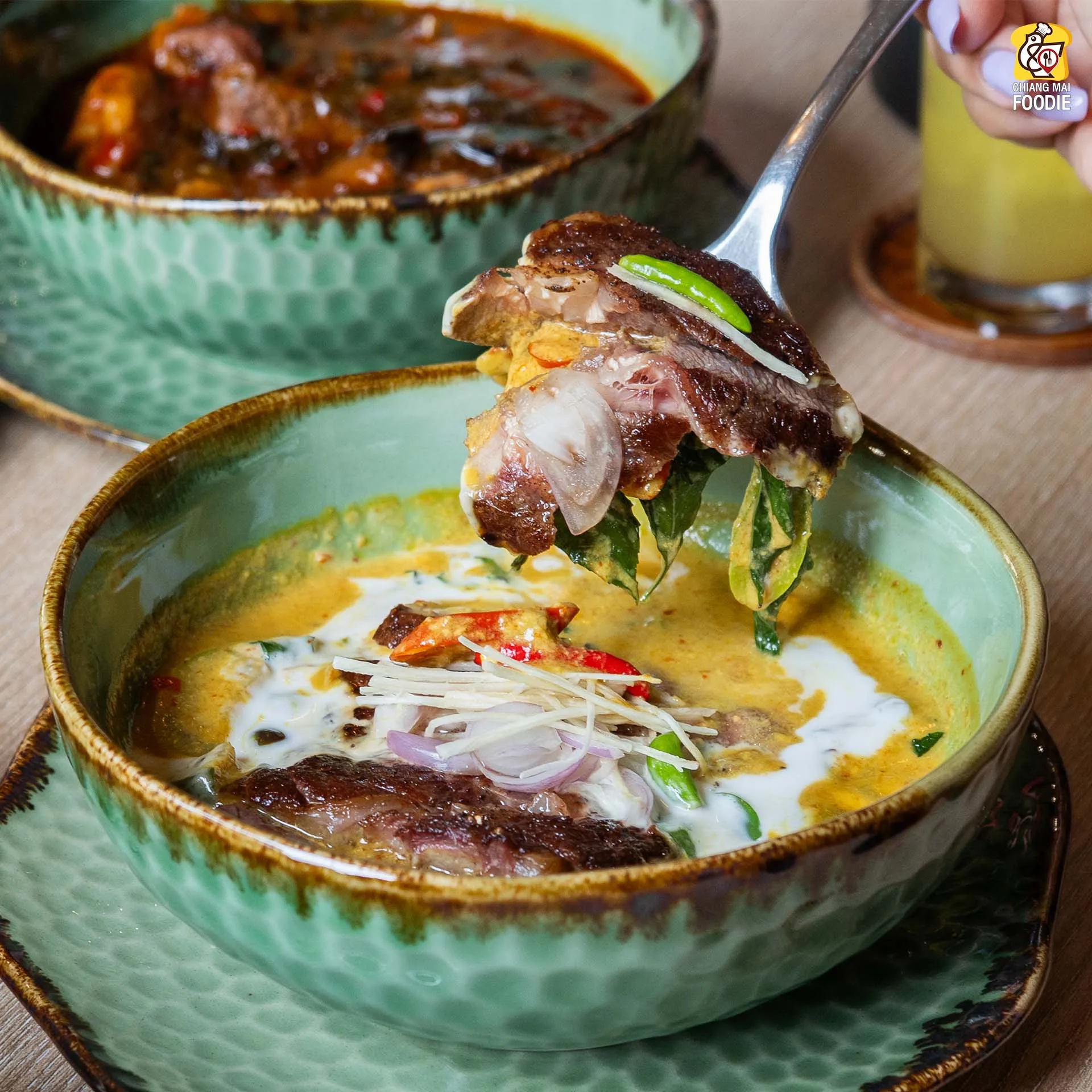 #แกงระแวงเนื้อย่าง เนื้อออสเตรเลียดรายเอจ 21 วันสำหรับรังสรรค์เมนูนี้ บอกเลยว่าเมนูเนื้อของร้านนี้จะใช้เนื้อตัวนี้หมดเลยค่ะ แกงพริกเขียวหวานเติมขมิ้นและตะไคร้ลงไป หอมเครื่องแกงรสนัวเข้มข้น เป็นแกงโบราณตั้งแต่สมัยรัชกาลที่ 5