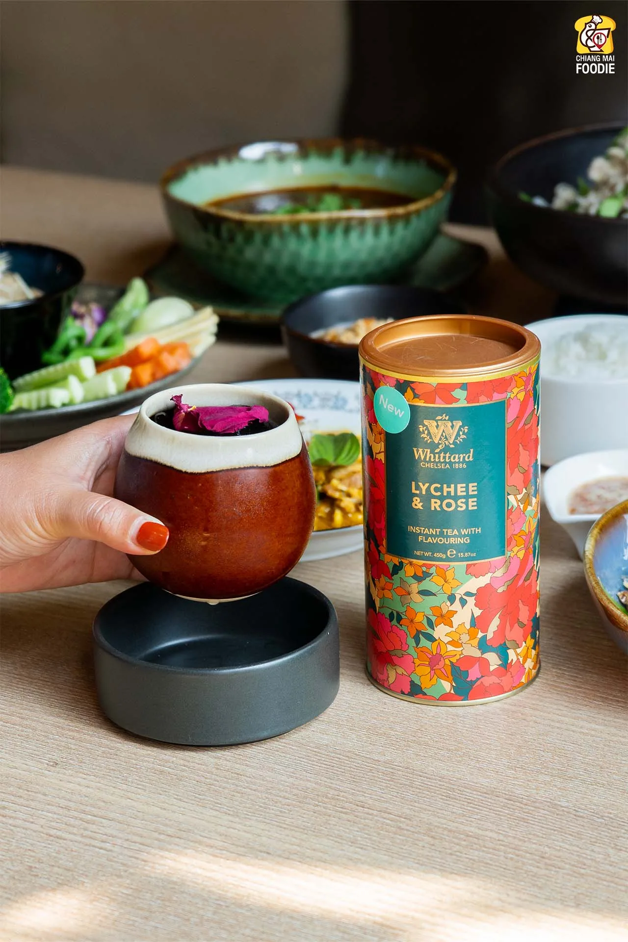 ตัวเครื่องดื่มของที่ร้านจะขอแนะนำ Butterfly Cardamom มีหน่อกระวานสดเป็นวัตถุดิบหลักผสมลิ้นจี่ อัญชันสด และใบมิ้น สดชื่นและทอปปิ้งด้วยชิ้นกระวานสด ทั้งสดชื่นและแปลกใหม่เลยค่ะ และสำหรับสายชอบจิบชา อย่าได้พลาดชาอินสแตนท์จากอังกฤษ Lychee&Rose