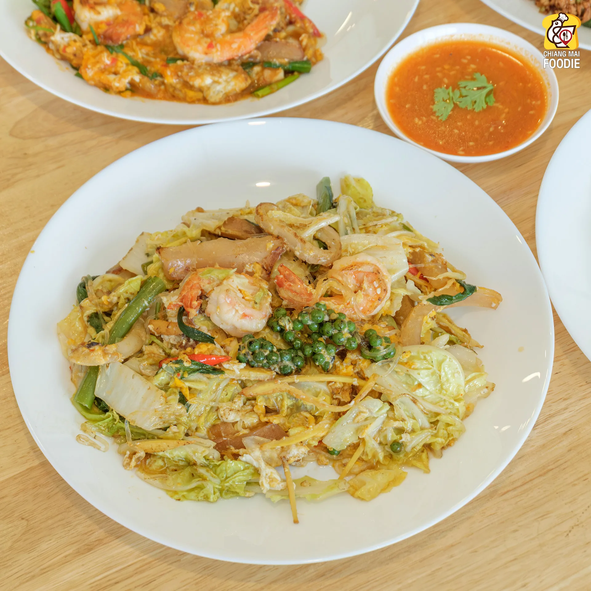 นอกจากตามชื่อร้าน เมนูสุกี้แห้ง – น้ำ แล้ว ยังมี เมนูสุกี้ผัดฉ่า ที่หอมทั้งกลิ่นกระทะ เครื่องเทศทั้งพริกไทยสดและกระชาย เป็นอีกรสชาติที่แปลกแต่อร่อยเข้ากันได้ ทานคู่กับน้ำจิ้มสุกี้ สูตรของทางร้านเฉพาะ ทำสดกันวันต่อวัน !!