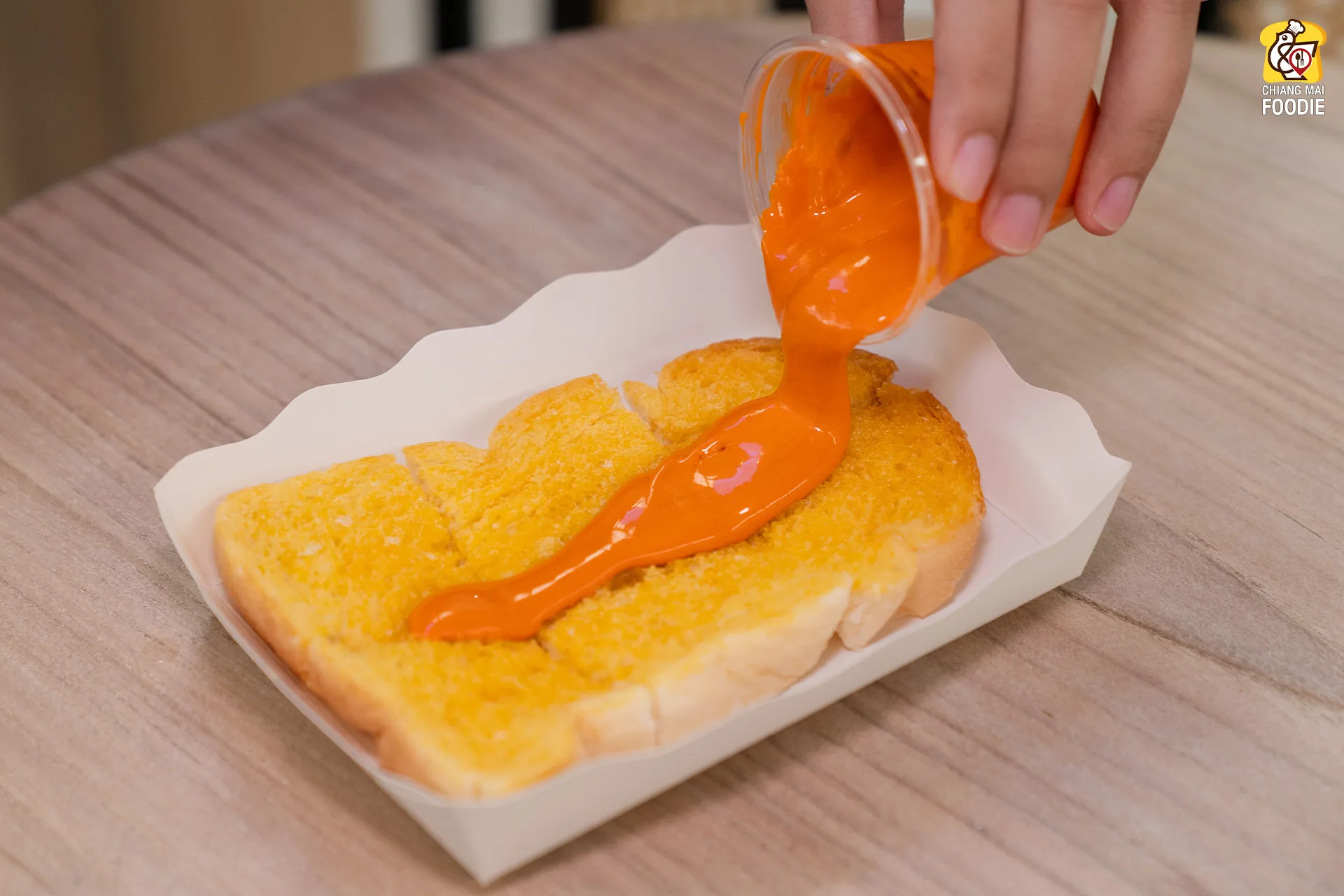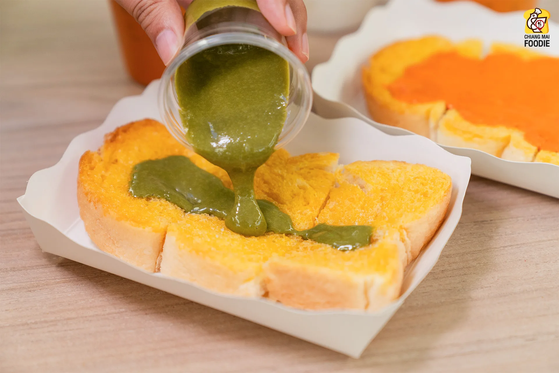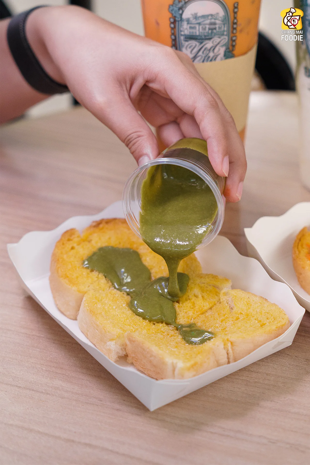 • ขนมปังปิ้ง หอมเนย ตัวแป้งกรอบ นุ่ม ราดด้วยซอสชาไทย / ชาเขียว ทานคู่กับเครื่องดื่ม ลงตัวสุด ๆ