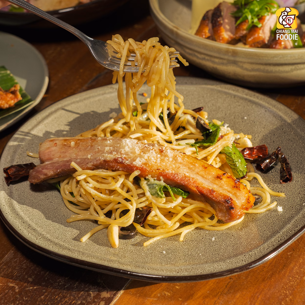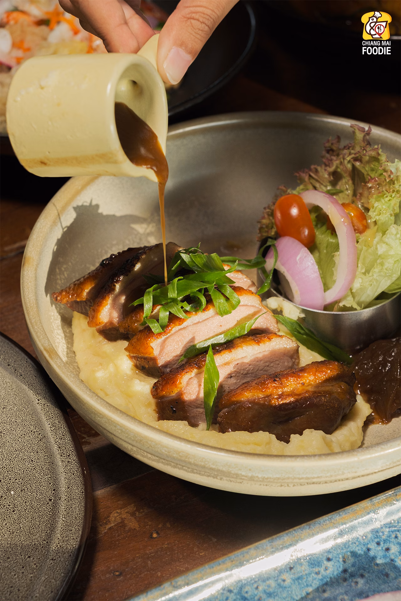 ร้านนี้เด่นด้าน smoked รมควันโดยไม่ใช้สารเคมี ทั้งเมนูเบค่อน ผัดพริกแห้งเบค่อนรมควัน กลิ่นหอมเป็นเอกลักษณ์ , อกเป็ดรมควัน พร้อมมันบด