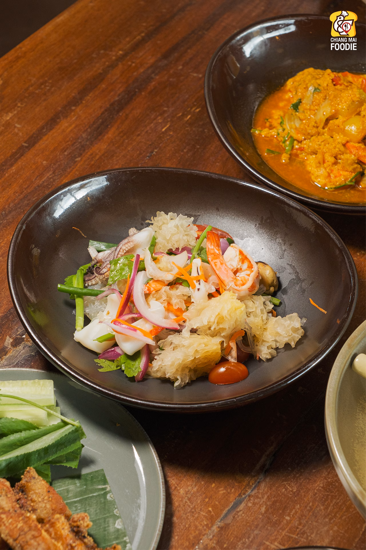 ส่วนเมนูซีฟู้ด ก็จัดเต็ม ทั้งผัดผงกะหรี่ทะเล , แกงส้มชะอมกุ้ง เข้มข้น จัดจ้าน , ยำวุ้นเส้นเห็ดหูหนูขาวทะเลเดือด ครบรส ถึงใจ