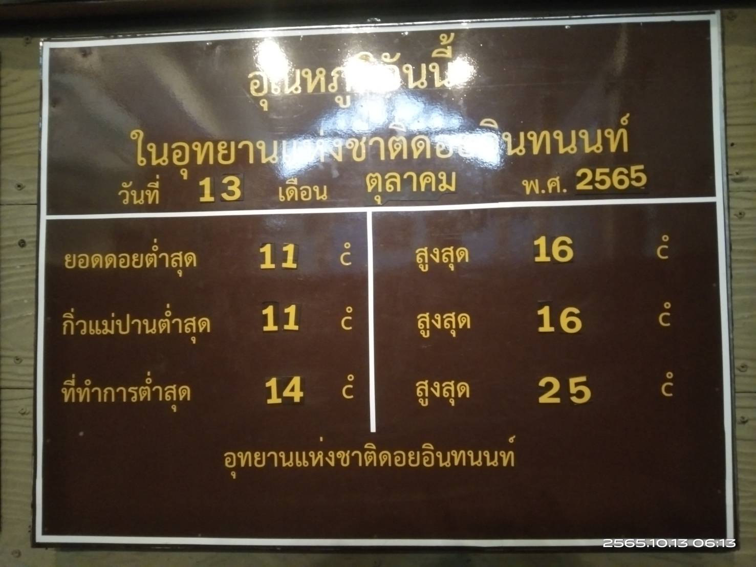 โดยเฉพาะต่างคนต่างลุ้นว่า บรรยากาศเริ่มหนาวเย็นเมื่อไหร่ และในเช้าวันนี้นับว่าเริ่มมีอุณหภูมิลดลงแล้ว แต่ก็ยังไม่มากนัก โดยวัดได้ต่ำสุดเช้านี้ 11 องศาฯ ที่ยอดดอย และกิ่วแม่ปาน ส่วนที่ทำการ 14 องศาฯ ซึ่งเป็นสัญญาณบ่งบอกว่าอากาศหนาวกำลังจะมาแล้ว เพราะปกติ ดอยอินทนนท์อุณหภูมิก็จะอยู่ประมาณ 13-16 องศาฯ จะคงอยู่แบบนี้ตลอดปี