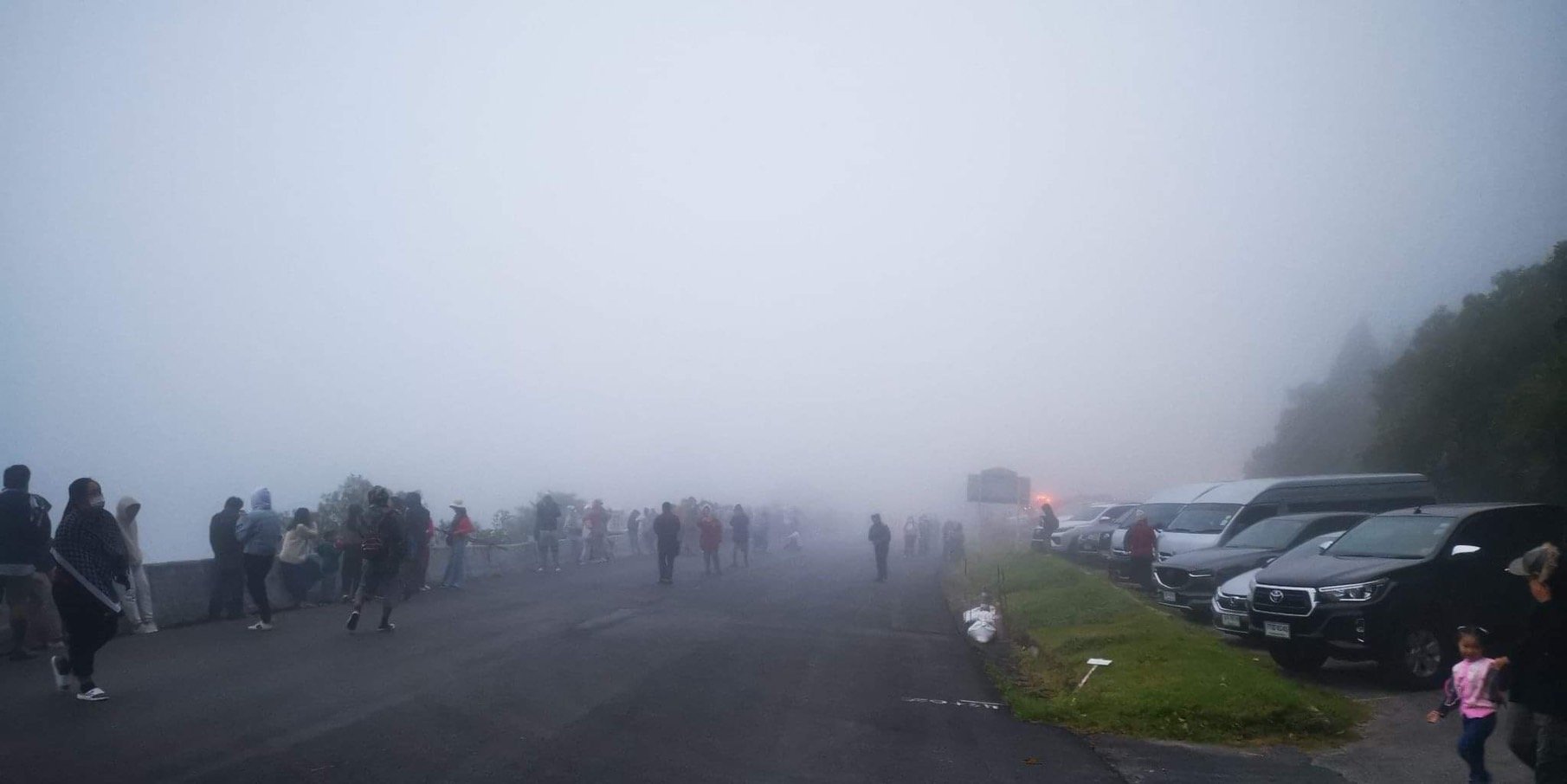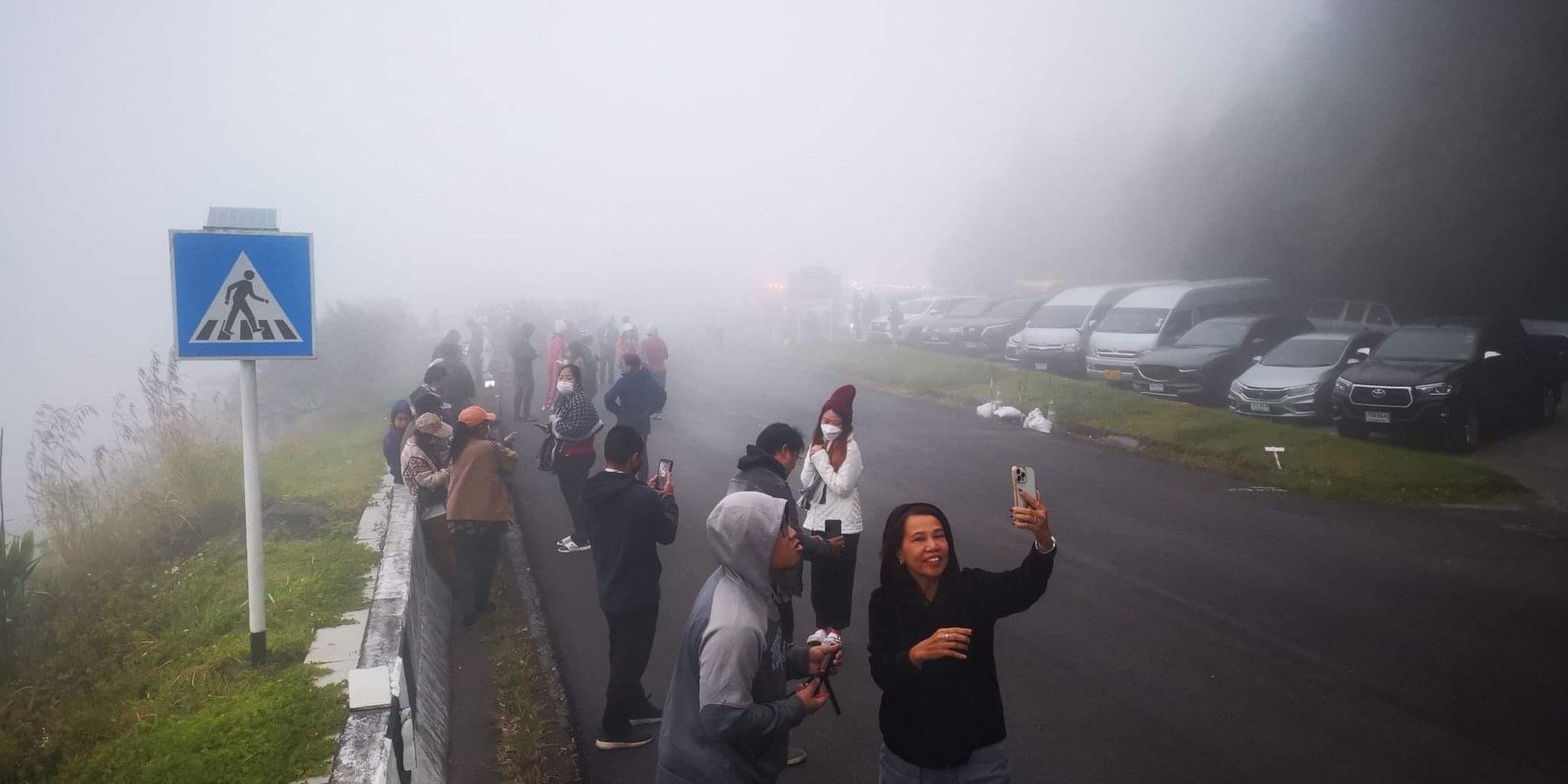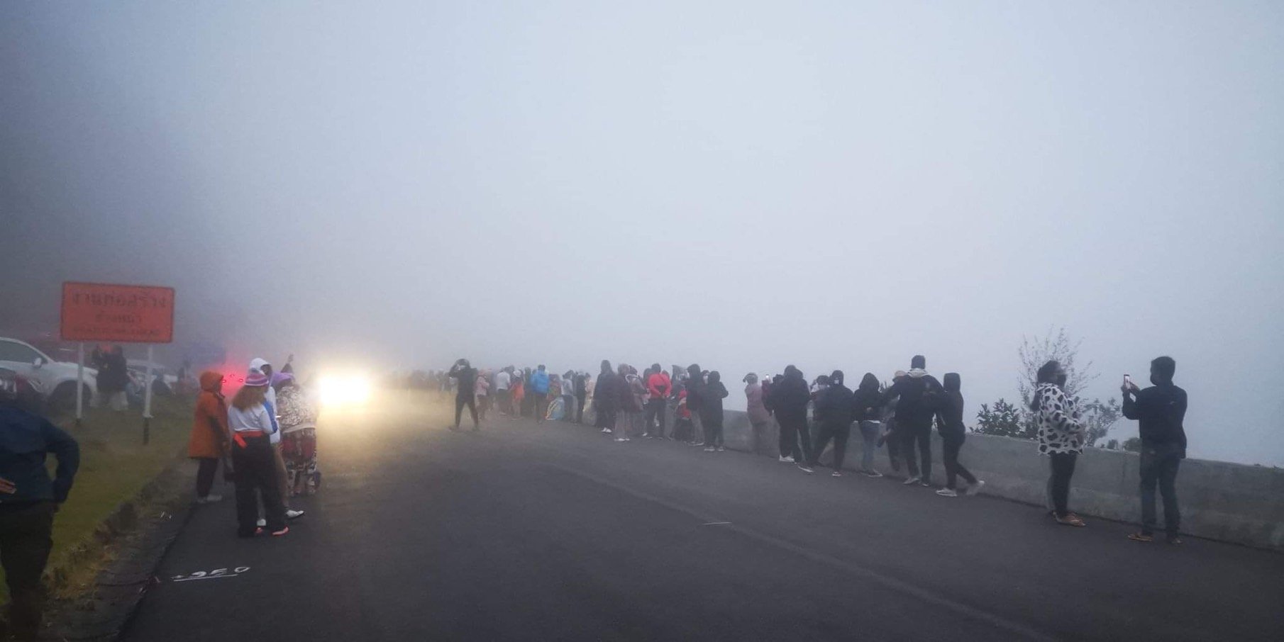 ในขณะที่กิ่วแม่ปาน ยังไม่เปิดให้นักท่องเที่ยวเข้าไปสัมผัสหนาว ยังอยู่ในช่วงฟื้นฟู จะเปิดให้นักท่องเที่ยวเข้าไปในราววันที่ 1 พ.ย. 65 นี้ ทางนักท่องเที่ยวได้เข้าเที่ยวชมความสวยงามที่พระมหาเจดีย์ 2 พระองค์ ในบรรยากาศที่หนาวเย็นท่ามกลางสายหมอก ซึ่งนักท่องเที่ยวแต่ละคนต้องสวมใส่เสื้อฮู้ดคลุมศรีษะตลอดเวลา