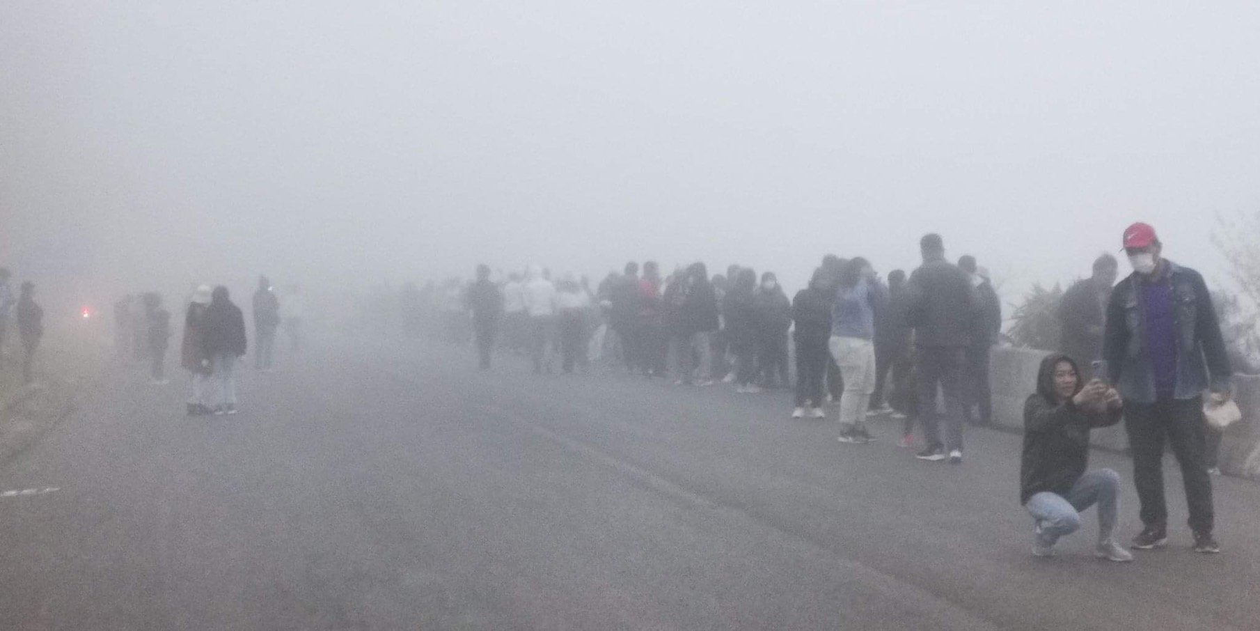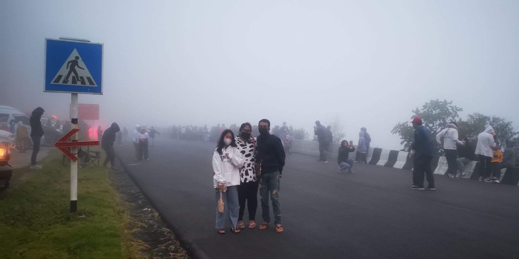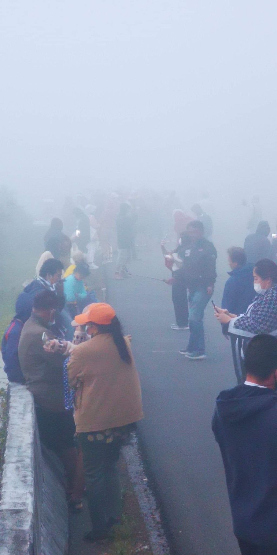 ในขณะที่กิ่วแม่ปาน ยังไม่เปิดให้นักท่องเที่ยวเข้าไปสัมผัสหนาว ยังอยู่ในช่วงฟื้นฟู จะเปิดให้นักท่องเที่ยวเข้าไปในราววันที่ 1 พ.ย. 65 นี้ ทางนักท่องเที่ยวได้เข้าเที่ยวชมความสวยงามที่พระมหาเจดีย์ 2 พระองค์ ในบรรยากาศที่หนาวเย็นท่ามกลางสายหมอก ซึ่งนักท่องเที่ยวแต่ละคนต้องสวมใส่เสื้อฮู้ดคลุมศรีษะตลอดเวลา
