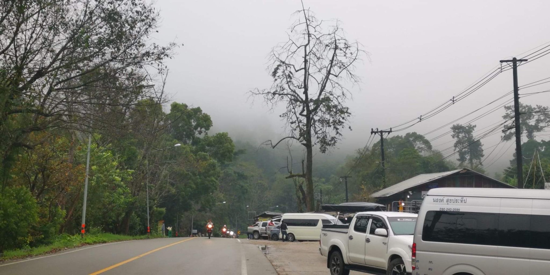 ขณะที่ขับรถลงมาจากยอดดอยอินทนนท์ถึงตลาดริมทางม้ง ระยะทางประมาณ 16 กิโลเมตร ตลอดระยะทางลงมามีหมอกลงหนาทึบ มองพื้นถนนในระยะใกล้ ขับเร็วรถอยู่ระหว่าง 20 กิโลเมตร ต่อชั่วโมงเท่านั้น ประกอบกับพื้นถนนลื่นจึงขอแจ้งไปยังผู้ขับยานพาหนะได้ใช้ความระมัดระวังเป็นพิเศษด้วย
