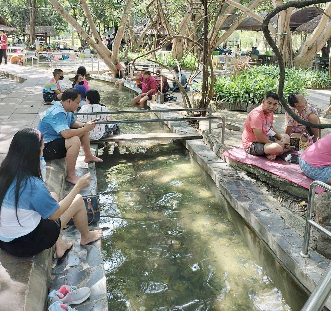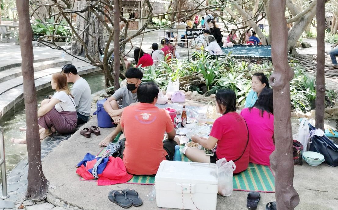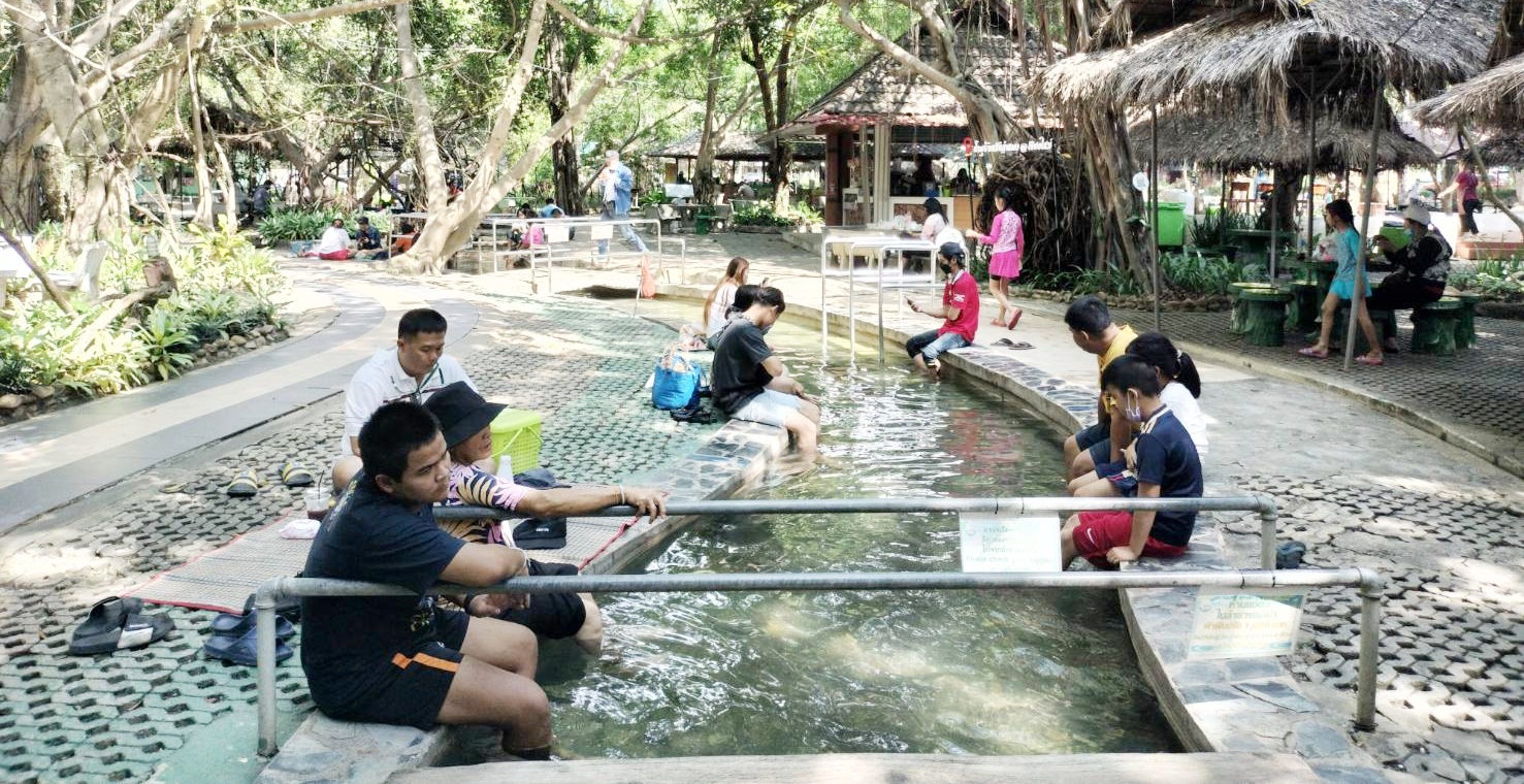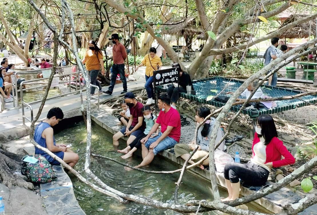 ส่วนที่น้ำพุร้อนสันกำแพง ก็เช่นกันได้มีนักท่องเที่ยวเริ่มมาเที่ยวกันเป็นจำนวนมากเพื่อมาสัมผัสบรรยากาศหนาวเย็น และพาครอบครัวมาพักผ่อนกัน