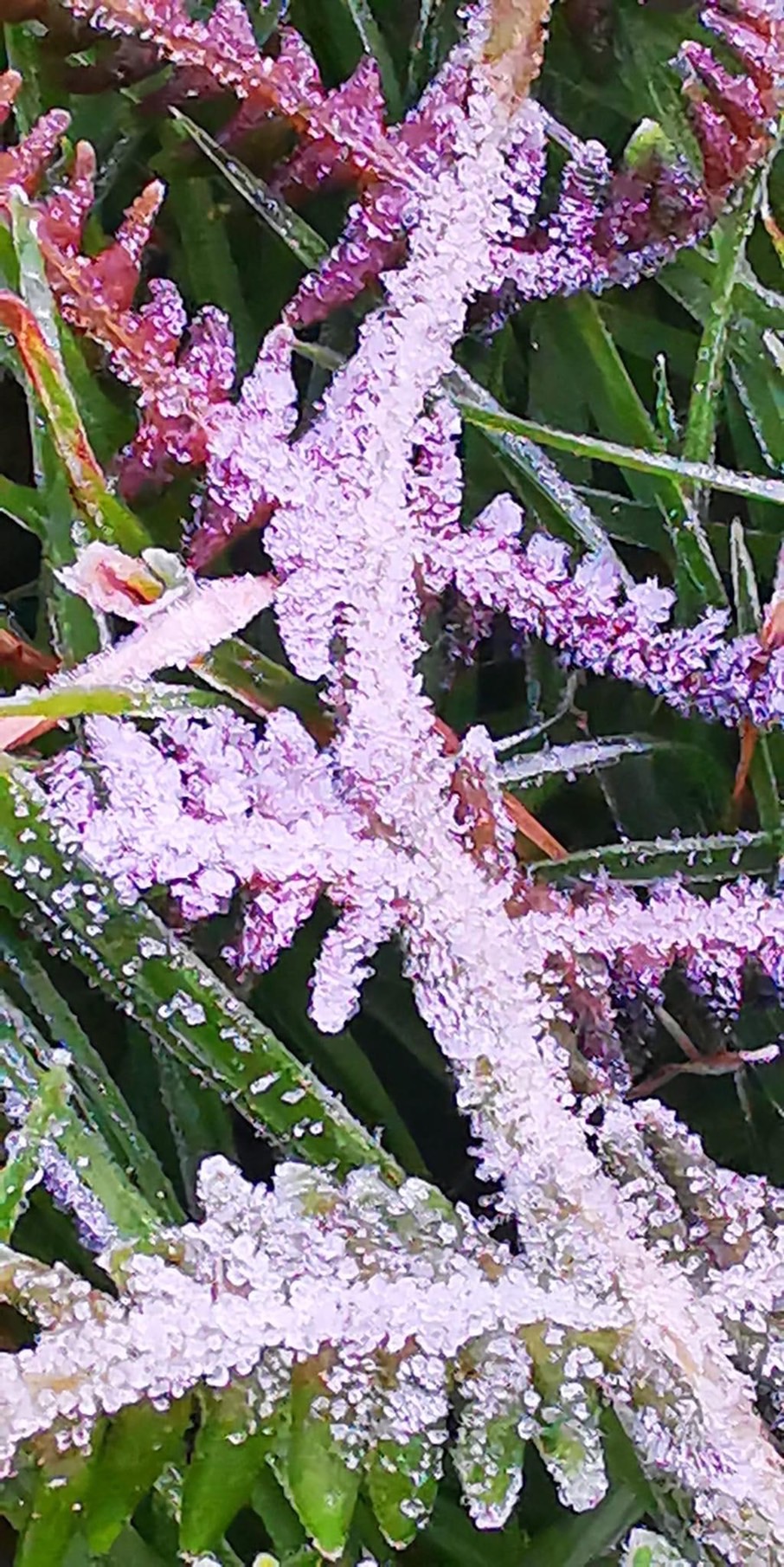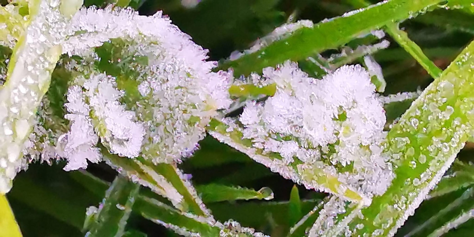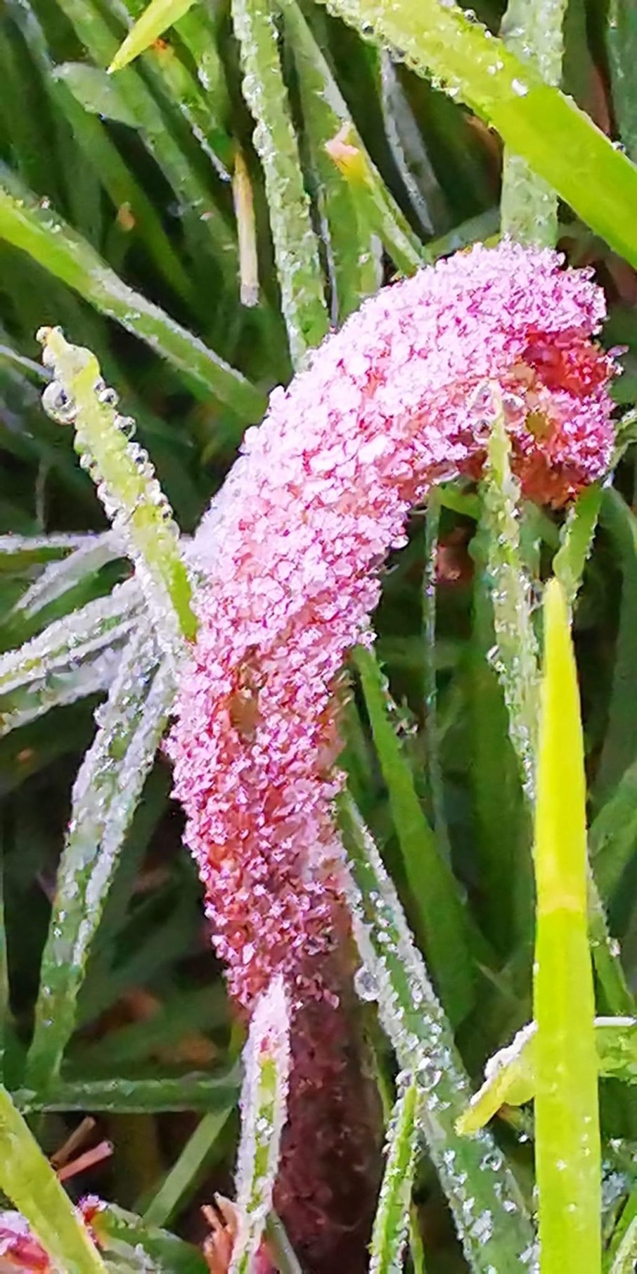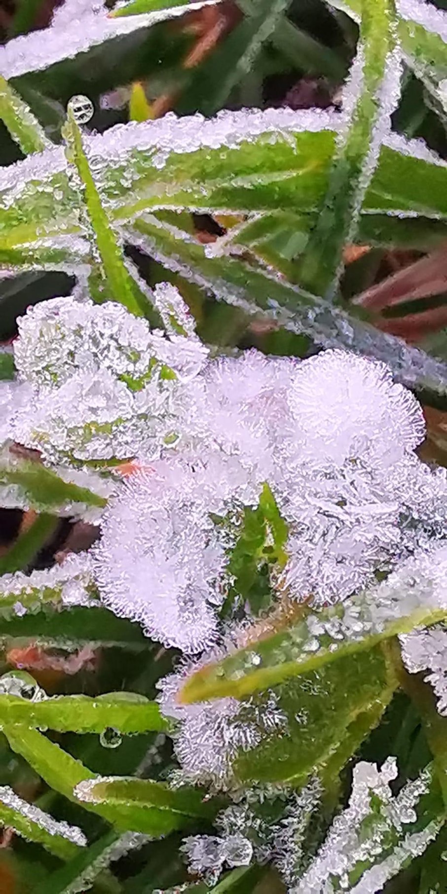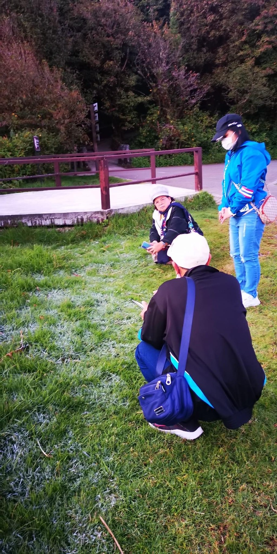 ทั้งยอดหญ้า ดอกไม้ มีน้ำแข็งค้างเกาะอยู่เป็นภาพที่สวยงามมาก ต่างเข้าชื่นชมและบันทึกภาพไว้เป็นที่ระลึก