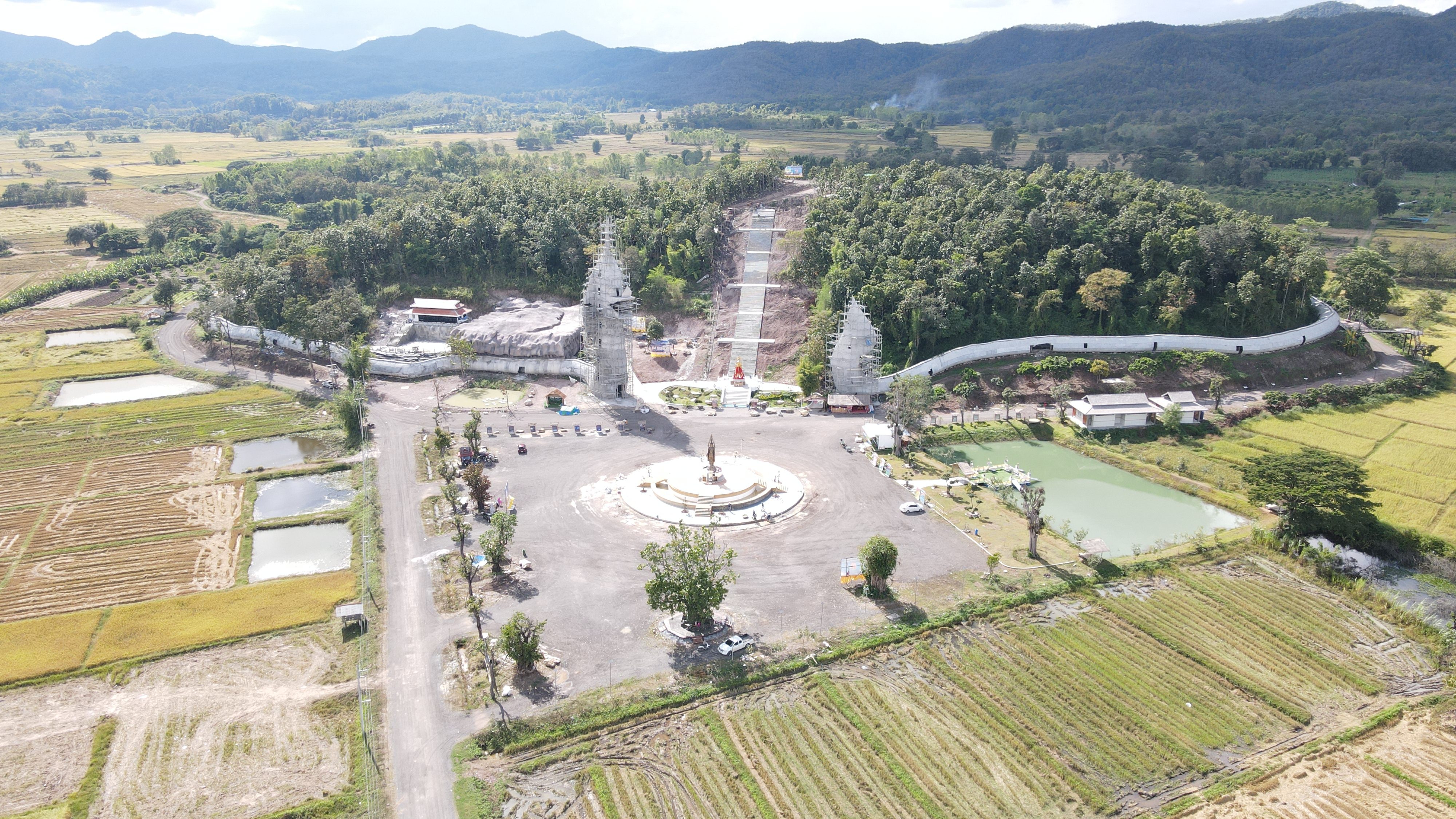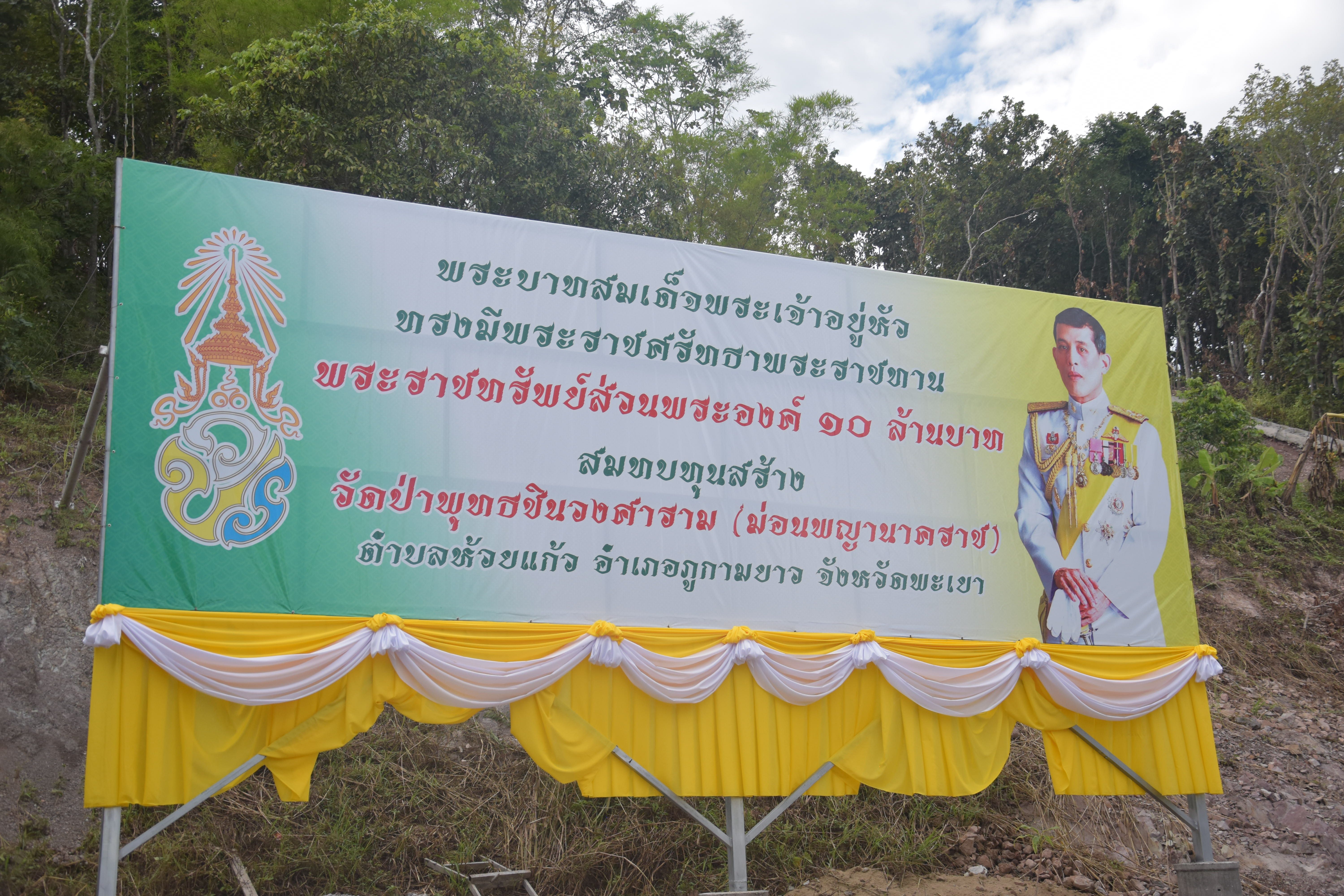 ซึ่งหลังจากนั้นอาตมาก็ได้มีการขอใช้พื้นที่ภูเขาลูกนี้จากสำนักงานปฏิรูปที่ดิน จ.พะเยา และในเวลานั้นมีการเข้ามาตรวจสอบจากหลายหน่วยงานก่อนที่นายกมล เชียงวงศ์ อดีตผู้ว่าฯพะเยาจะเซ็นลงนามให้อนุญาตก่อสร้างได้ในเวลาต่อมา โดยพื้นที่แห่งนี้ในการก่อสร้างนั้นมีทั้งสิ้น 40 ไร่ 3 งาน 80 ตรว. รวมทั้งได้เริ่มก่อสร้างมาแล้วเกือบ 2 ปี และในเวลานี้สร้างเสร็จไปแล้วจำนวน 4 ส่วนจาก 6 ส่วนทั้งหมด ซึ่งด้านหน้ามีองค์พระมหาจักรพรรดิโลกวิวรณ์ ปางเปิดโลกตั้งตระหง่านอยู่ตรงลานหน้าวัด อีกทั้งไฮไลน์ของวัดอยู่ที่องค์พญามุจลินท์นาคราชที่ให้ช่างได้ปั้นล้อมภูเขาลูกนี้ซึ่งมีความยาว 900 เมตรและภายในลำตัวของพญานาคเป็นห้องปฏิบัติธรรมจำนวน 111 ห้องโดยกำลังสร้างยังไม่แล้วเสร็จดีเท่าไหร่