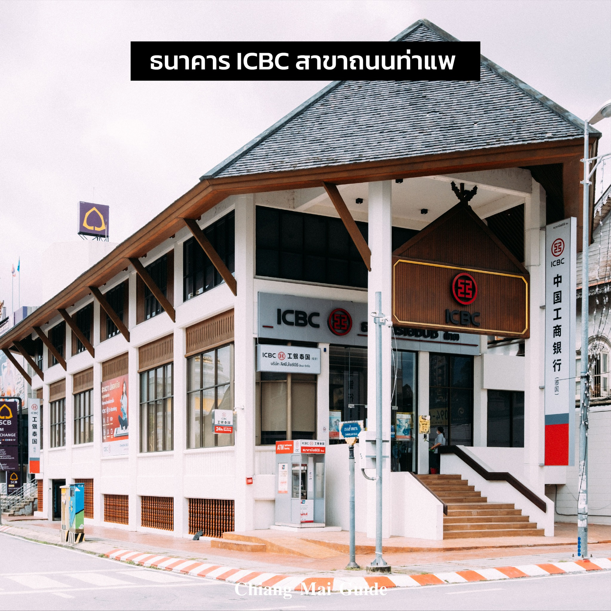6. ธนาคาร ICBC สาขาถนนท่าแพ ก่อนที่จะกลายมาเป็นธนาคาร ICBC ตรงนี้เคยเป็นอาคารที่ถูกทิ้งร้างมาก่อน หลังจากนั้นได้มีการปรับโครงสร้างใหม่ ให้ดูมีความทันสมัยขึ้น โดยยังคงทรงของอาคารและใช้ไม้ซึ่งเป็นส่วนประกอบของอาคารเช่นเดิม