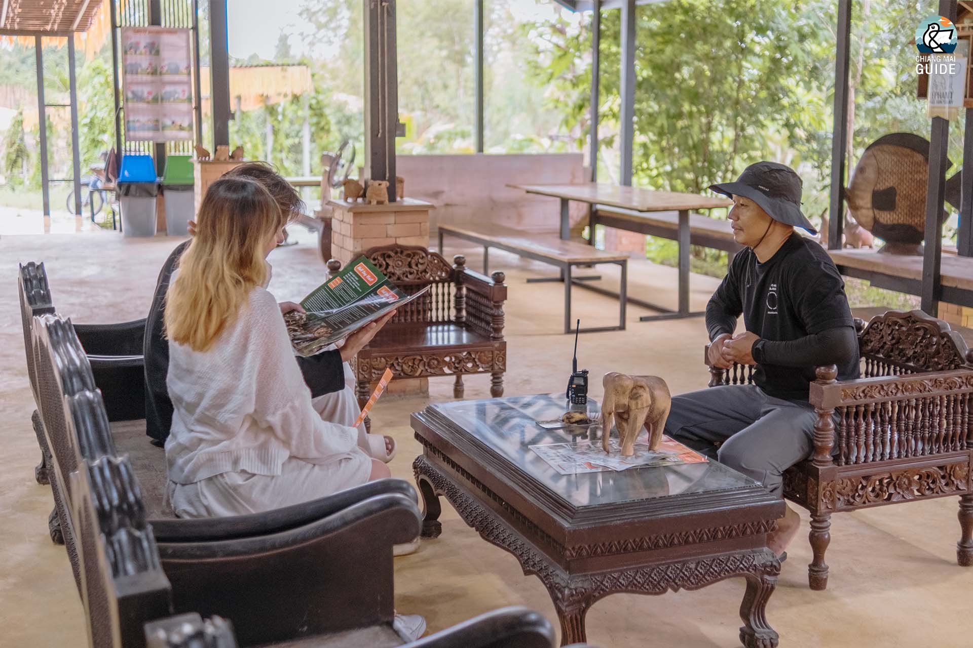 เมื่อเดินทางมาถึง …. ลงทะเบียนด้านหน้ารับริชแบรนด์ พร้อมกรอกข้อมูลทำประกัน จากนั้น…เดินเข้ามาด้านใน รับฟังข้อมูลจากพี่ไกด์ อธิบายวิธีการให้อาหารช้างวิธีการสัมผัสช้าง รวมทั้งข้อมูลกิจกรรมของที่นี้ อย่างเป็นกันเองสนุกสนานมาก