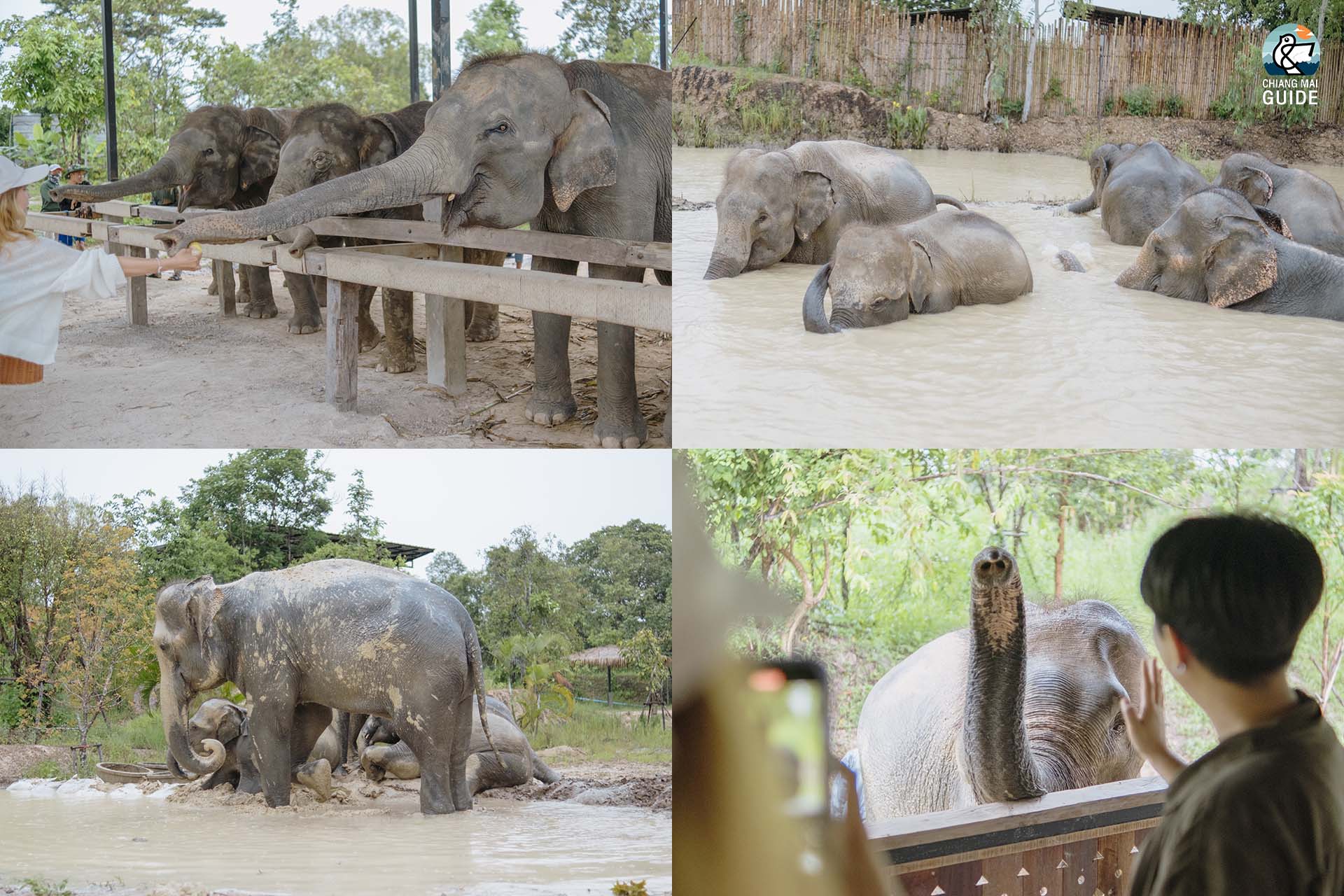 เริ่มกิจกรรม….จุดแรก ■ ให้อาหารช้าง ที่นี่มีช้างทั้งหมด 6 เชือก ช้างเด็กสุดอายุ 4 ขวบ ทุกเชือกมีชื่อเรียก เวลาเรียกชื่อก็จะขานรับกัน น่ารักมากกกก จากนั้นได้สัมผัสใกล้ชิดกับช้าง ■ เดินเที่ยวเล่นกับช้าง กิจกรรมนี้สามารถถ่ายรูปกับช้างทั้ง 6 เชือกได้อย่างเอ็กซ์คลูซีพสุดๆ ■ สักพักเหล่าบรรดาน้องช้างก็ทยอยเดินลงไปอาบน้ำ ในบ่อน้ำ ■ ต่อด้วยสปาโคลน ช้างเด็กเล่นกันอย่างน่ารัก สนุกสนาน ตัวเต็มไปด้วยโคลนหลังจากอาบน้ำมา เห็นแล้วต้องยิ้มตามกับความน่ารักของน้องช้าง ส่วนแอดมินก็ยืนสังเกตุการณ์ด้วยความชื่นใจ