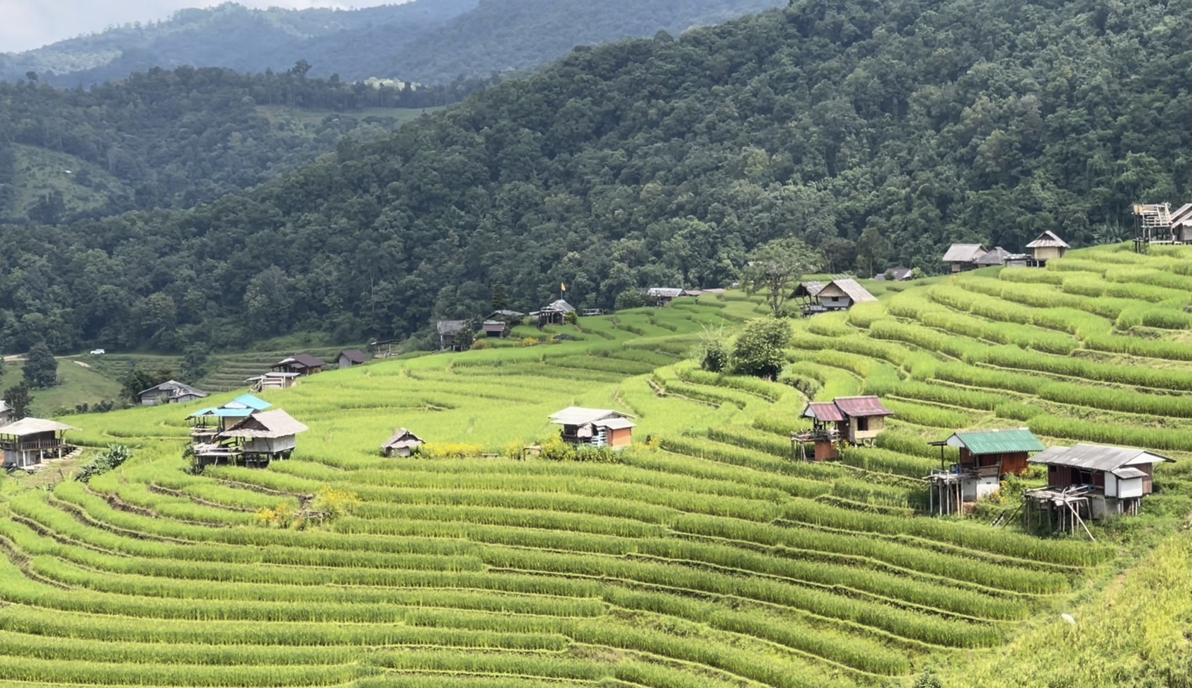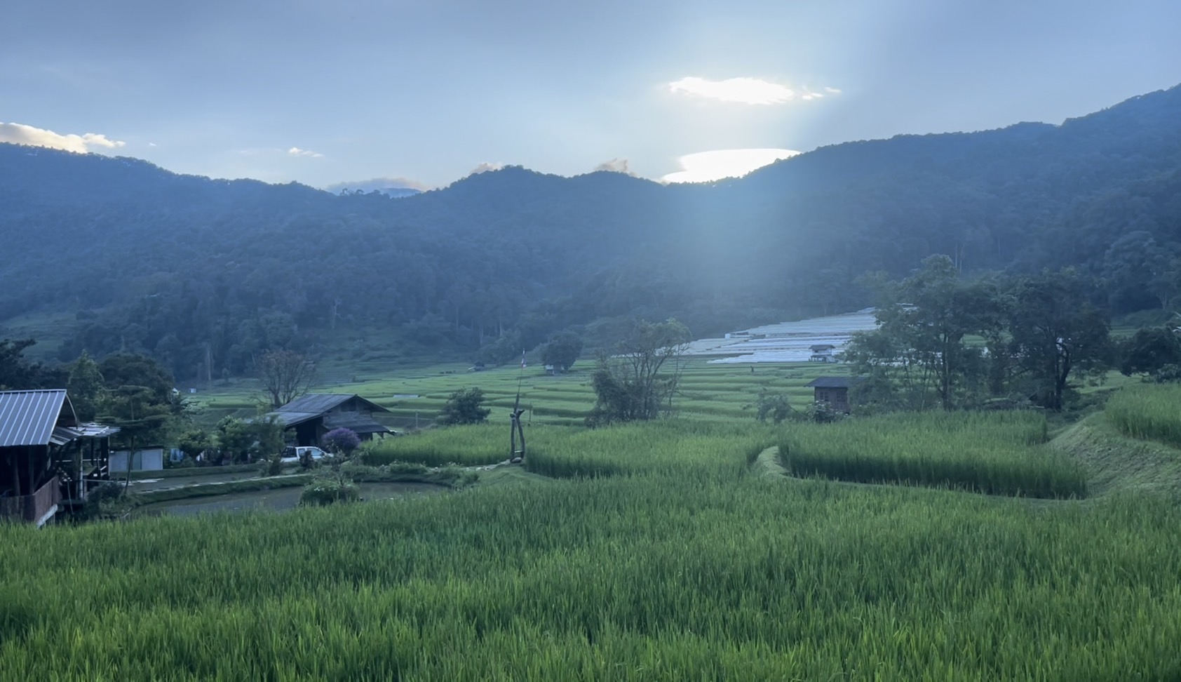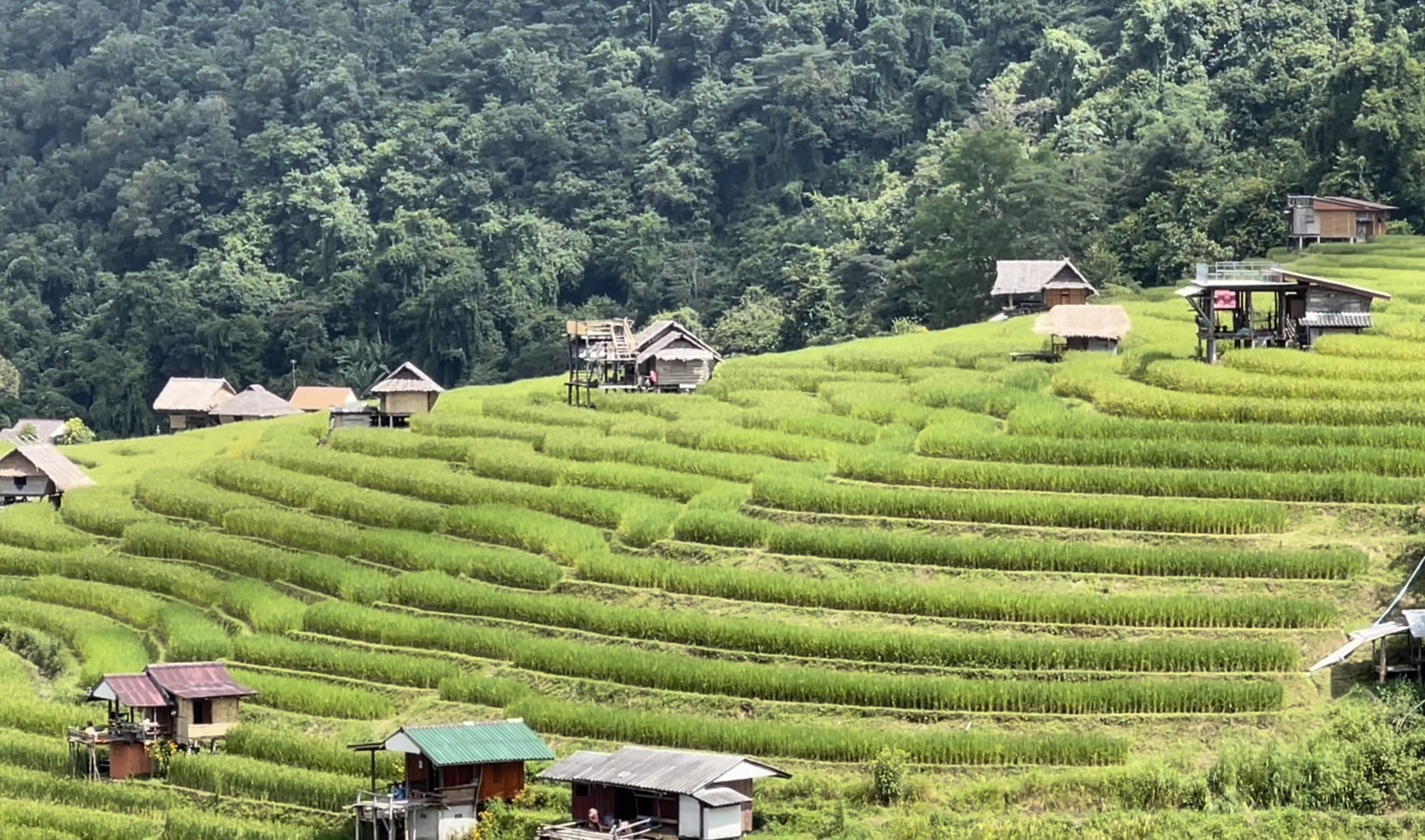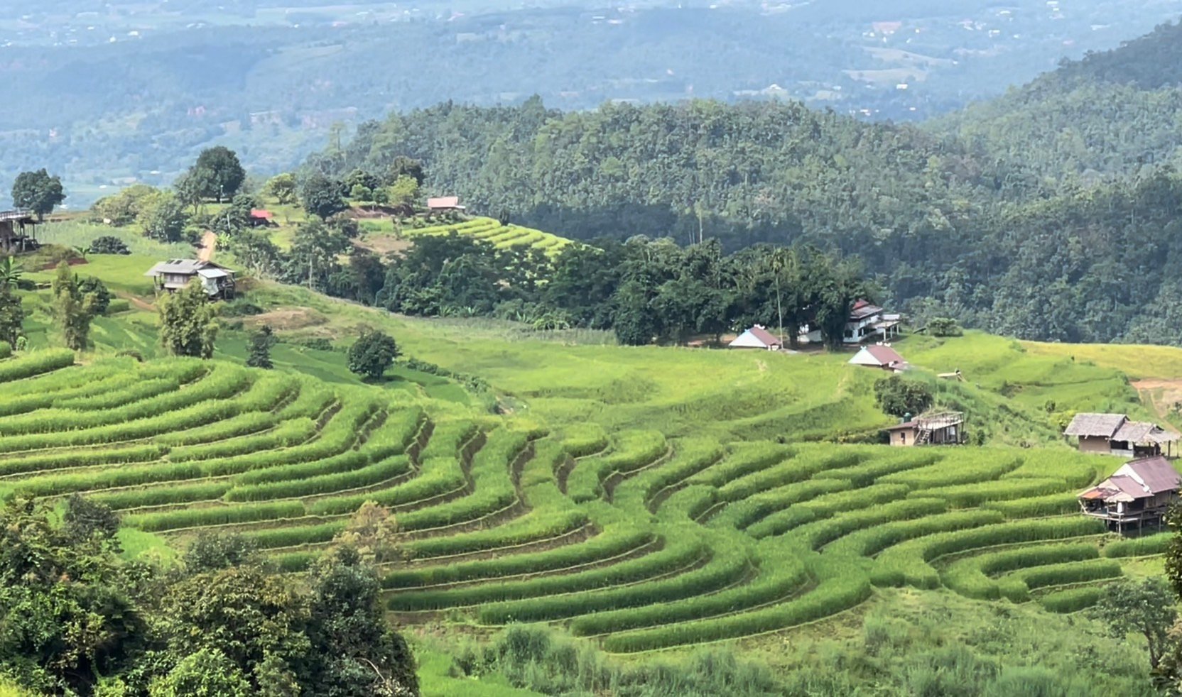 สุดฟิน นาขั้นบันไดป่าบงเปียง วิวทิวทัศน์ 360 องศา นักท่องเที่ยวเดินทางเช็คอินถ่ายภาพกลางทุ่งนาต้นข้าวเขียวขจีอากาศเย็นสบาย