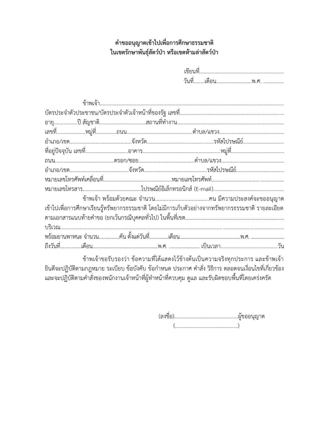 หนังสือขออนุญาตเข้าเขตรักษาพันธุ์สัตว์ป่า