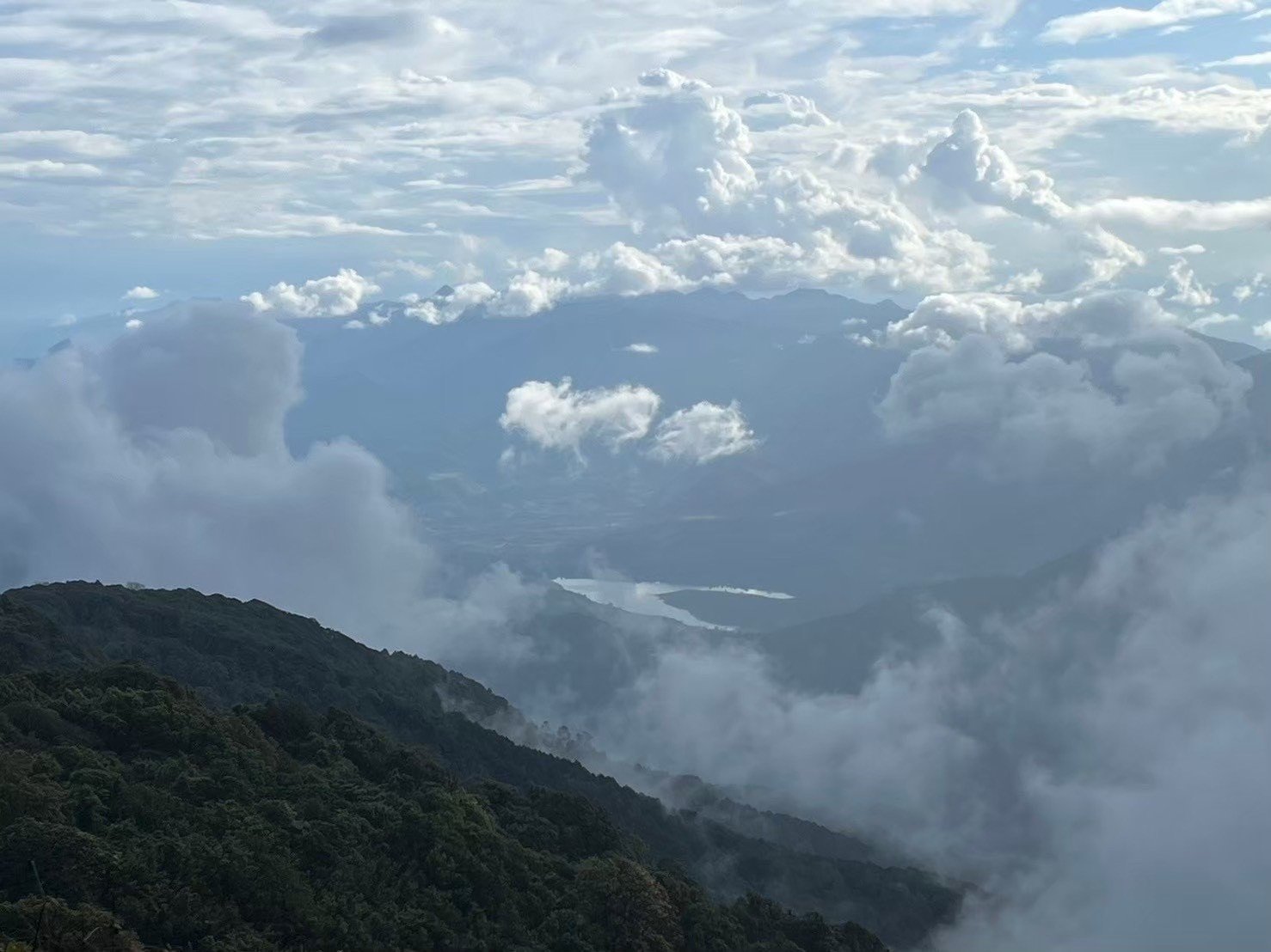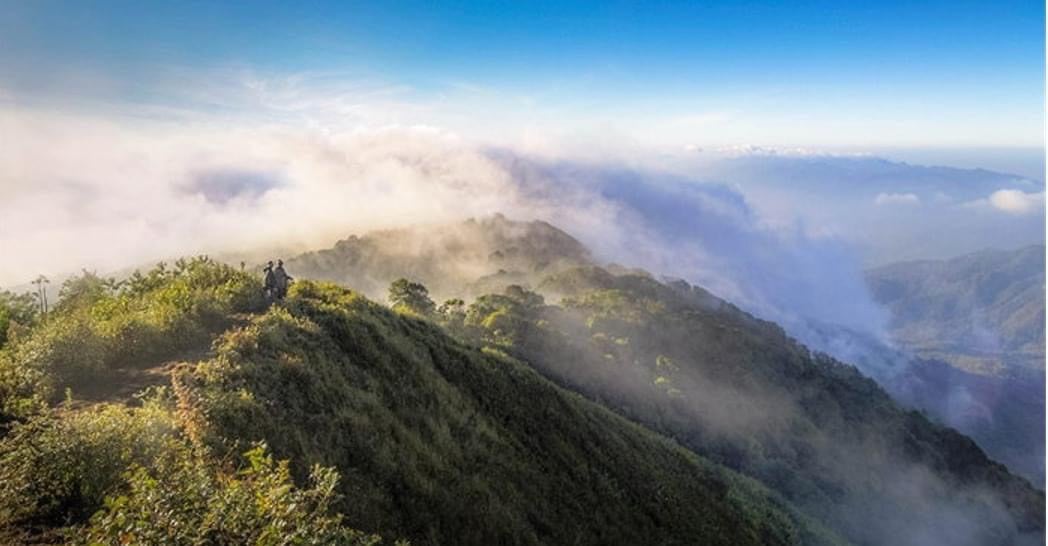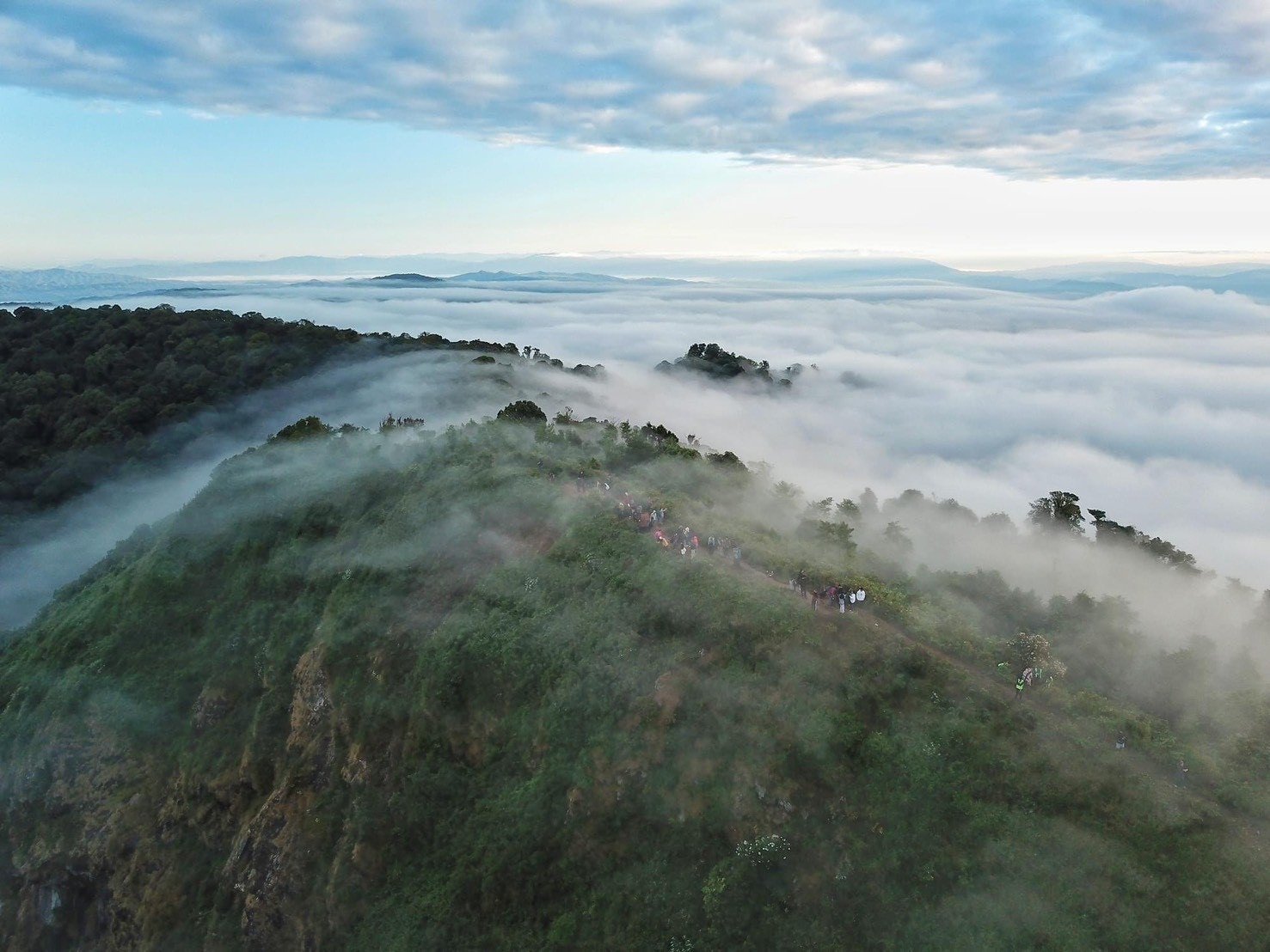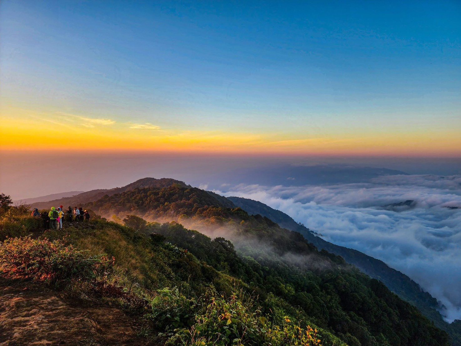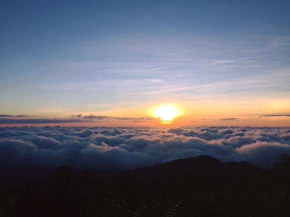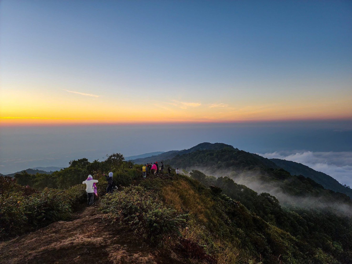 บรรยากาศหนาวเย็น และมองเห็นพระอาทิตย์โผล่ขึ้นเหนือขอบฟ้า แสงสีทองตัดกับไอหมอกบางๆ ที่ลอยคลุมเหนือทิวเขาอย่างสวยงาม ลมหนาวพัดโชยเบาๆ เพิ่มความสดชื่นให้ผู้มาเยือน สูดอากาศบริสุทธิ์ได้เต็มปอด