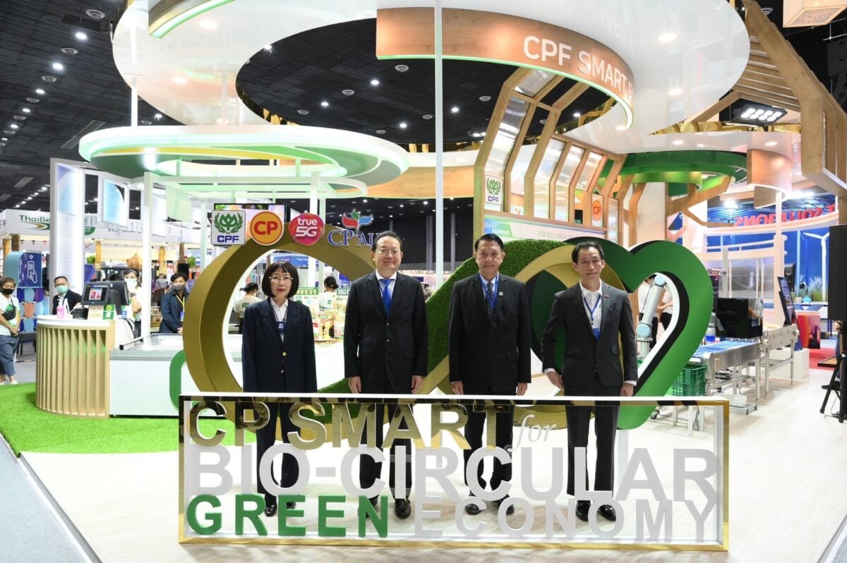 “บริษัท ซีพีเอฟ (ประเทศไทย) จำกัด (มหาชน)” นำเสนอแนวคิด SMART FEED-FARM-FOOD For Bio-Circular Green ในกระบวนการผลิตจากต้นน้ำถึงปลายน้ำ โดยอาศัยเทคโนโลยีและนวัตกรรม อาทิ การใช้ AI Automation และ Robotics เพื่อเก็บข้อมูล วิเคราะห์ และวางแผนการผลิต, Smart Farming ที่มีการใช้ Silo Censor วัดปริมาณอาหารโรงเลี้ยงไก่ Combox แสดงข้อมูลโรงเลี้ยงไก่ และกล้อง Burdoo วัดน้ำหนักไก่ รวมถึงการนำของเสียมาแปรเป็นพลังงาน นอกจากนี้ยังนำเสนอนวัตกรรม “PLANT-TEC Innovation” ซึ่งเป็นการวิจัยและพัฒนาผลิตภัณฑ์เนื้อทางเลือก โดยเป็นความร่วมมือระหว่าง CPF RD Center และผู้เชี่ยวชาญระดับโลกจากหลายประเทศ เช่น สหรัฐอเมริกา ญี่ปุ่น ไต้หวัน รวมถึงนักวิทยาศาสตร์ทางอาหารจากจุฬาลงกรณ์มหาวิทยาลัยและมหาวิทยาลัยแม่ฟ้าหลวง และนำไปสู่ผลิตภัณฑ์เนื้อจากพืช MEAT ZERO เนื้อทางเลือกที่สมบูรณ์แบบทั้งลักษณะ รสชาติ กลิ่น และเนื้อสัมผัส ต่อยอดเป็นผลิตภัณฑ์อาหารหลากหลายรูปแบบ