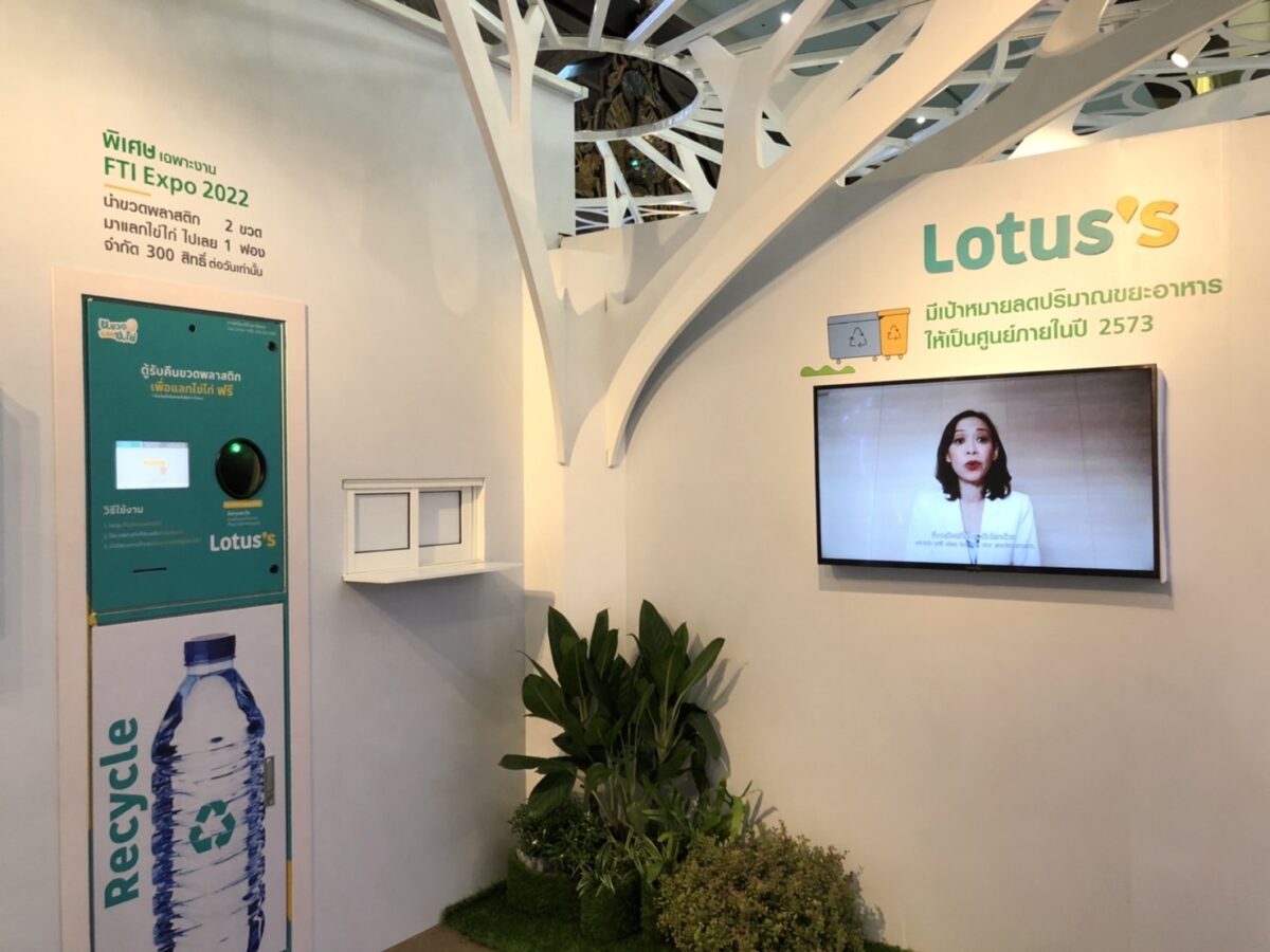 บริษัท เอก-ชัย ดีสทริบิวชั่น ซิสเทม จํากัด (โลตัส) นำเสนอกระบวนการบริหารจัดการอาหารส่วนเกิน (ตั้งแต่ต้นน้ำถึงปลายน้ำ (Farm to Fork) ในโซน A102 ด้วยเป้าหมายขยะอาหารเป็นศูนย์ ภายในปี พ.ศ. 2573 คือ “แหล่งเพาะปลูก” ด้วยโครงการรับซื้อตรงจากเกษตรกร (Direct sourcing), สร้างโรงแพคใกล้กับแหล่งเพาะปลูก ซึ่งช่วยยืดอายุผลิตภัณฑ์กว่า 10 ชั่วโมง และขั้นตอนการแพคและขนส่งมีการควบคุมอุณหภูมิ ซึ่งช่วยลดปริมาณการสูญเสียถึง 2%, ส่วนของ “สาขา” ด้วยการลดราคาสินค้าเพื่อจูงใจให้ผู้บริโภคซื้อสินค้าที่ใกล้วันหมดอายุก่อน (Reduce to Clear), นำอาหารส่วนเกินบางส่วนไปทำการแปรรูปเป็นอาหารพร้อมทาน และบริจาคอาหารส่วนเกินภายใต้โครงการ “กินได้ไม่ทิ้งกัน” และในส่วนของ “ครัวเรือน” ซึ่งสร้างความตระหนักถึงปัญหาขยะอาหารในกลุ่มผู้บริโภค อีกทั้งมีกิจกรรมที่ผู้เข้าชมงาน สามารถนำขวดพลาสติก PET 2 ขวด มาหย่อนที่ตู้รับคืนขวด และแลกรับไข่ไก่ 1 ฟอง