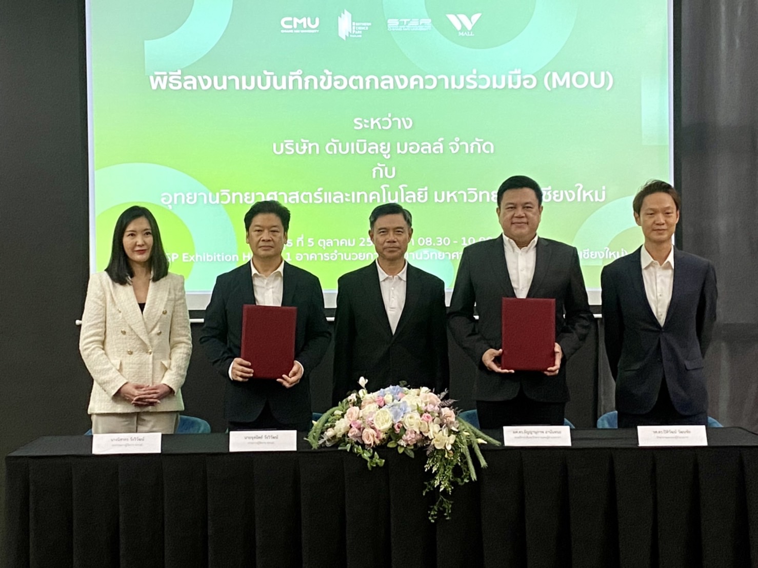 วันที่ 5 ตุลาคม 2565 ศ.ดร.นพ.พงษ์รักษ์ ศรีบัณฑิตมงคล อธิการบดีมหาวิทยาลัยเชียงใหม่ , ผศ.ดร. ธัญญานุภาพ อานันทนะ รองอธิการบดี มหาวิทยาลัยเชียงใหม่ นายจุลนิตย์ วังวิวัฒน์ กรรมการผู้จัดการ บจก. ดับเบิลยู มอลล์ (ประธานหอการค้า จังหวัดเชียงใหม่ ) และศ.น.สพ.ดร.กรกฎ งานวงศ์พาณิชย์ คณบดี คณะสัตวแพทยศาสตร์ มหาวิทยาลัยเชียงใหม่ ลงนามบันทึกข้อตกลงความร่วมมือเตรียมเปิด NSP INNO STORE @WMall พื้นที่ทดสอบตลาดผลิตภัณฑ์นวัตกรรม รองรับกลุ่มนักเดินทางและลูกค้าผู้ใช้บริการมากขึ้น พร้อม The Brick Co-Working Space @WMall ที่สามารถปรับเปลี่ยนฟังก์ชันการใช้พื้นที่ได้อย่าง หลากหลายเพื่อโอกาสเติบโตทางธุรกิจของผู้ประกอบการภาคเหนือใน Community Mall แห่งใหม่