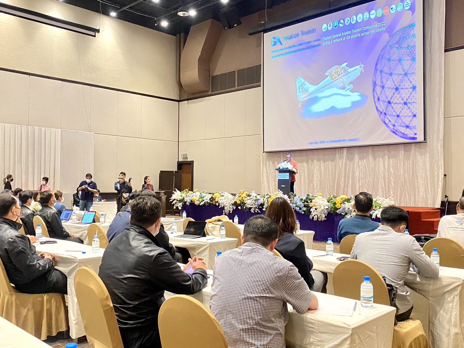 วันที่ 3 ธันวาคม 2565 ดร.สันติ ป่าหวาย หัวหน้าผู้ตรวจราชการกระทรวงการท่องเที่ยวและกีฬา (ประธานในพิธี) ,นายวรญาณ บุณยราช รองผู้ว่าราชการจังหวัดเชียงใหม่ ,พล.อ.ธงชัย สาระสุข รองประธานคณะกรรมาธิการ / ประธานคณะอนุกรรมาธิการ และ นายดำรงค์ องอาจ นายกสมาคมการบินภาคเหนือ ร่วมกันเปิดงานสัมมนา ส่งเสริมการท่องเที่ยวเชิงอากาศยาน (Aviation Tourism) และกีฬา และการสร้างเครือข่ายสนามบินขนาดเล็กทั่วประเทศ ที่โรงแรมเชียงใหม่แกรนด์วิว จังหวัดเชียงใหม่
