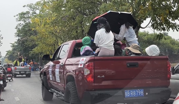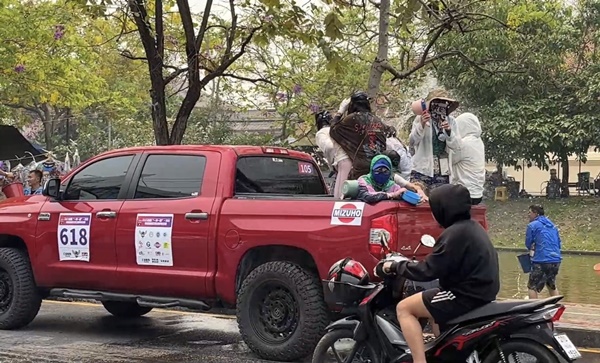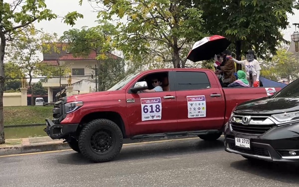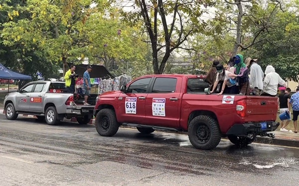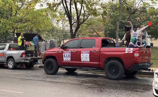 ยินดียิ่งแล้วแขกแก้วมาเยือน คาราวานรถยนต์นักท่องเที่ยวจากจีน เริ่มตระเวนเล่นสาดน้ำสงกรานต์ สนุกสนานบริเวณคูเมืองเชียงใหม่