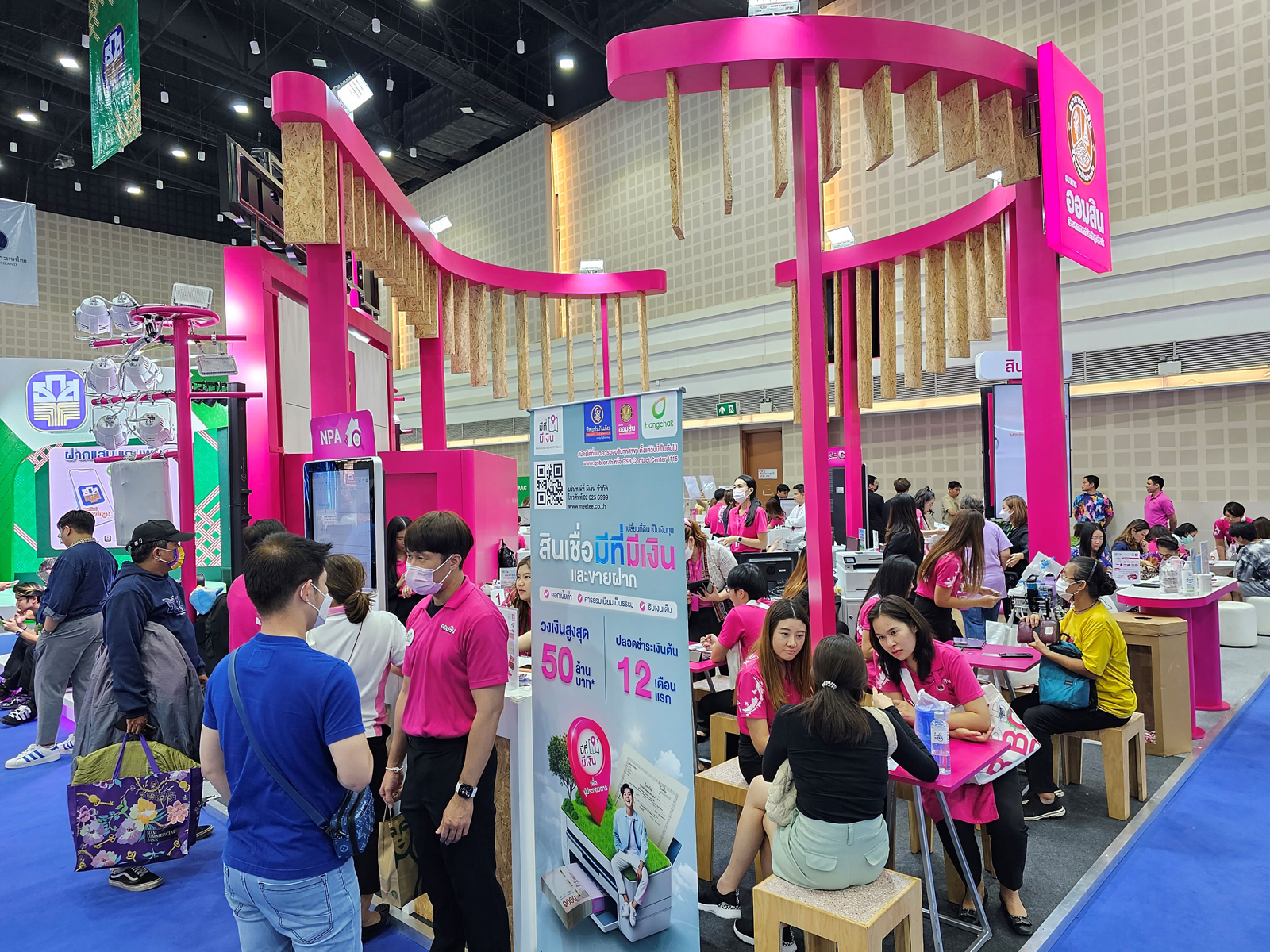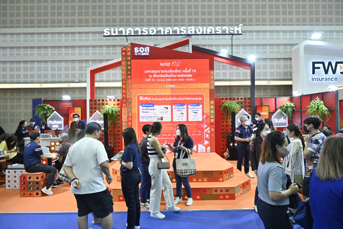 ธนาคารอาคารสงเคราะห์ : สินเชื่อบ้าน อัตราดอกเบี้ยพิเศษ เมื่อจองสิทธิ์ในงาน เดือนที่ 1-6 ดอกเบี้ย 0.71% ต่อปี เดือนที่ 7-24 ดอกเบี้ย 2.71% ต่อปี ปีที่ 3 ดอกเบี้ย 3.71% ต่อปี เฉลี่ยอัตราดอกเบี้ยเฉลี่ย 3 ปีแรก ดอกเบี้ย 2.71% ปีที่ 4 จนถึงตลอดอายุสัญญา ทรัพย์ NPA คุณภาพดีทำเลเด่น ลดสูงสุด 50% ของราคาประเมิน ผ่อนนานสูงสุด 24 เดือน สลากออมทรัพย์ ธอส. ชุดนาคราช ผลตอบแทนหน้าสลาก 1.00% ต่อปี (เมื่อฝากครบกำหนด) สลากออมทรัพย์ ธอส. วิมานเมฆ Plus ผลตอบแทนหน้าสลาก : 1.70% ต่อปี (เมื่อฝากครบกำหนด)
