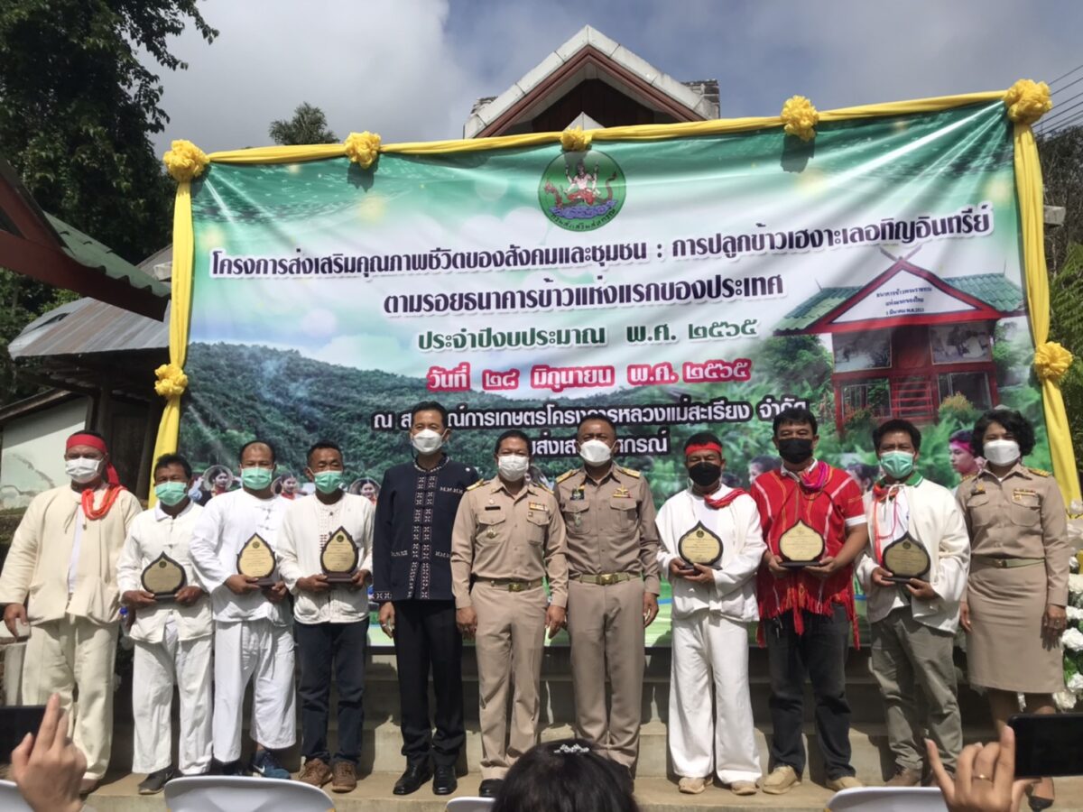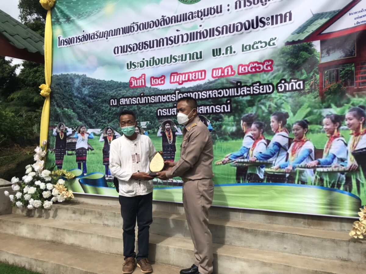 พร้อมกันนี้ รองอธิบดีกรมส่งเสริมสหกรณ์ ได้เปิดโครงการส่งเสริมคุณภาพชีวิตของสังคมและชุมชน พร้อม มอบโล่รางวัลแก่สหกรณ์และบุคคลดีเด่นในพื้นที่โครงการหลวง ประจำปี พ.ศ. 2564 ประกอบด้วย รางวัลสหกรณ์ในพื้นที่โครงการหลวงดีเด่น จำนวน 2 รางวัล ได้แก่สหกรณ์การเกษตรโครงการหลวงแม่สะเรียง จำกัด และสหกรณ์การเกษตรโครงการหลวงบ้านอมพาย จำกัด รางวัลสมาชิกสหกรณ์ดีเด่น จำนวน 4 รางวัล ได้แก่สมาชิกสหกรณ์การเกษตรโครงการหลวงแม่สะเรียง จำกัด 1 รางวัล สมาชิกสหกรณ์การเกษตรโครงการหลวงบ้านอมพาย จำกัด 1 รางวัล และสหกรณ์พัฒนาพื้นที่สูงแบบโครงการหลวงสบเมย จำกัด 2 รางวัล จากนั้นลงพื้นที่ภาคบ่าย ปลูกข้าวเฮงาะเลอทิญอินทรีย์แบบเกษตรอินทรีย์ บริเวณแปลงเกษตรอินทรีย์ของสมาชิกสหกรณ์ และกิจกรรมอาสาพัฒนาพื้นที่ชุมชน ตามรอยธนาคารข้าวแห่งแรกของประเทศและแห่งเดียวในโลก
