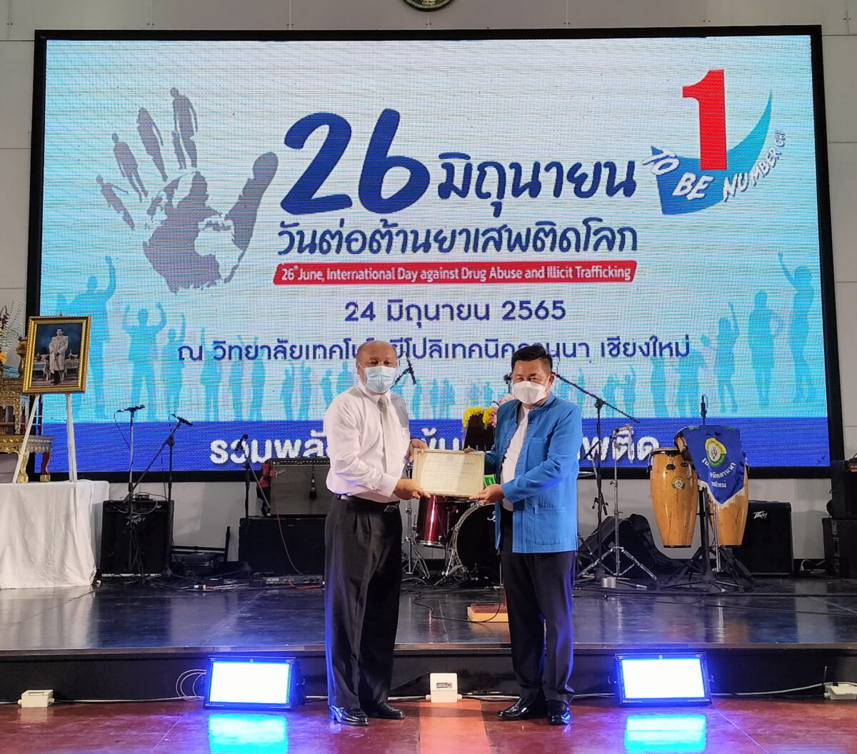เมื่อวันที่ 24 มิถุนายน 2565 นายวัชรพงศ์ ฝั้นติ๊บ ผู้อำนวยการวิทยาลัยเทคนิคเชียงใหม่ ประธานกรรมการอาชีวศึกษาจังหวัดเชียงใหม่ พร้อมด้วยรองผู้อำนวยการ ครูแผนกวิชาช่างไฟฟ้ากำลัง คณะครู นำนักศึกษา เข้าร่วมงานวันต่อต้านยาเสพติดโลก จังหวัดเชียงใหม่ ประจำปีการศึกษา 2565 เพื่อเป็นการร่วมรณรงค์การป้องกันยาเสพติดตามนโยบายของรัฐบาล และการมีส่วนร่วมขององค์กรทุกฝ่าย ได้รับเกียรติจาก นายประจญ ปรัชญ์สกุล ผู้ว่าราชการจังหวัดเชียงใหม่ มอบเกียรติบัตร ด้วยวิทยาลัยเทคนิคเชียงใหม่ให้การสนับสนุนการจัดงานและร่วมต่อต้านยาเสพติดในสถานศึกษา ณ วิทยาลัยเทคโนโลยีโปลิเทคนิคลานนาเชียงใหม่