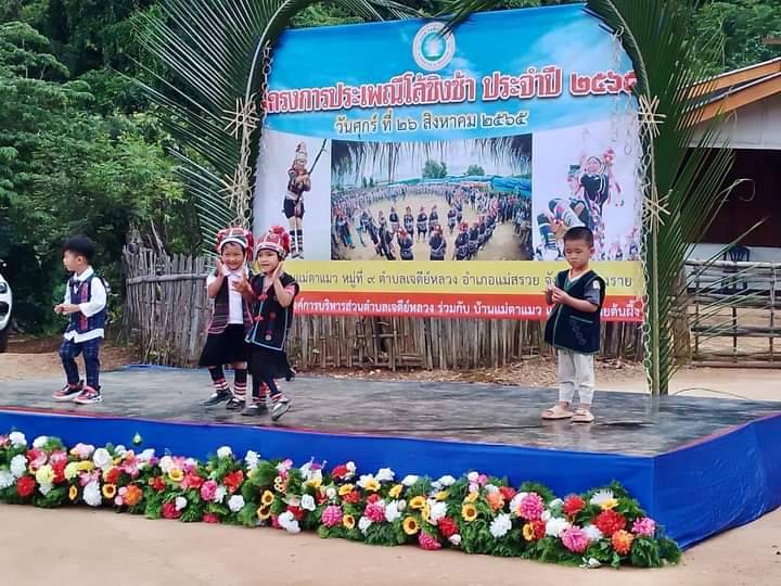 โดยกิจกรรมในงาน ประกอบด้วยการแสดงของเด็กนักเรียนโรงเรียนบ้านแม่ตาแมว ซึ่งงานนี้ประธานในพิธี และผู้เข้าร่วมงานได้เข้าร่วมละเล่นกระบอกไม้ไผ่ สร้างสีสัน ของผู้สูงอายุบ้านแม่ตาแมว ซึ่งจัดขึ้นเพื่อสืบสานประเพณีอันดีงามที่มีมายาวนานของชนเผ่าอาข่าให้คงอยู่ตลอดไป