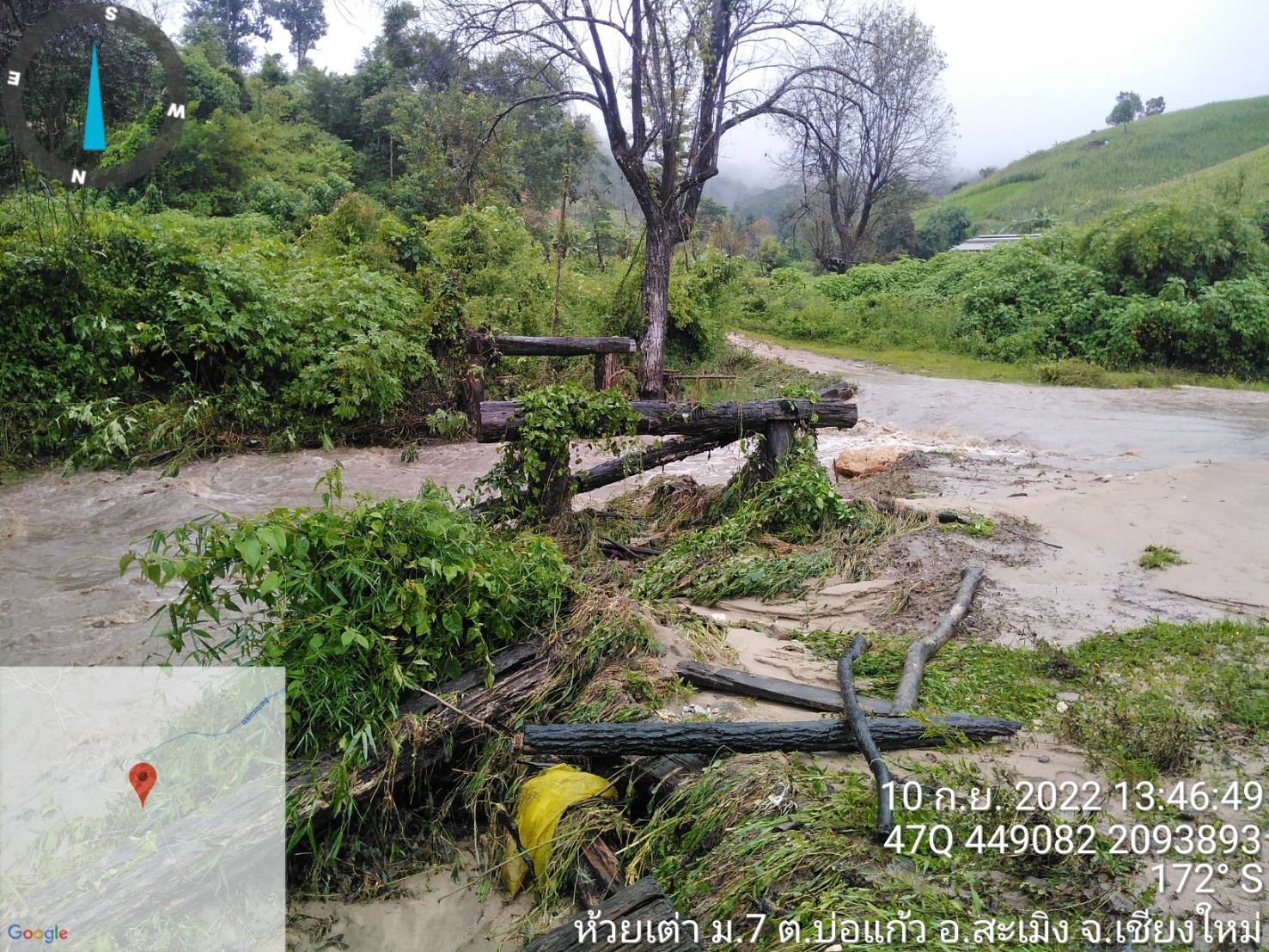 วันที่ 10 ก.ย. 2565 เวลา 15.15 น. อำเภอสะเมิง รายงานว่า อ.สะเมิง มีฝนตกต่อเนื่องตั้งแต่คืนวันที่ 9 ก.ย. 2565 จนถึงปัจจุบัน มีพื้นที่ได้รับผลกระทบ ได้แก่ ตำบลแม่สาบ หมู่ที่ 1 บ้านแม่ขาน ตำบลบ่อแก้ว หมู่ที่ 1 บ้านป่าเกี๊ยะนอก และหมู่ที่ 7 บ้านห้วยเต่า ตำบลยั้งเมิน หมู่ที่ 3 บ้านยั้งเมิน หมู่ที่ 5 บ้านห้วยทรายขาว และหมู่ที่ 8 บ้านใหม่ประชาชื่น