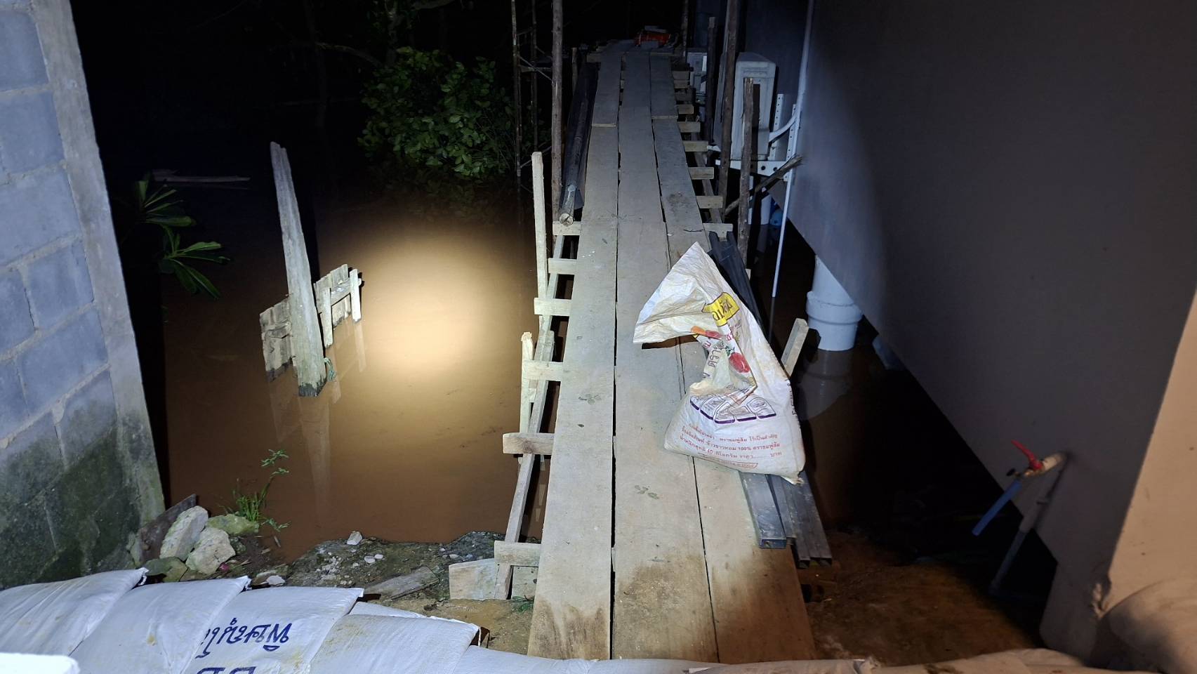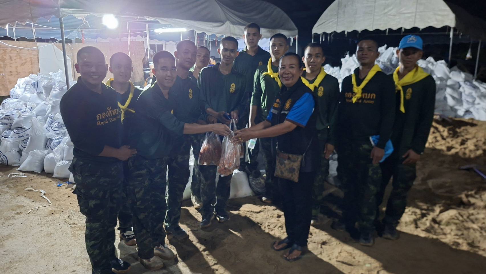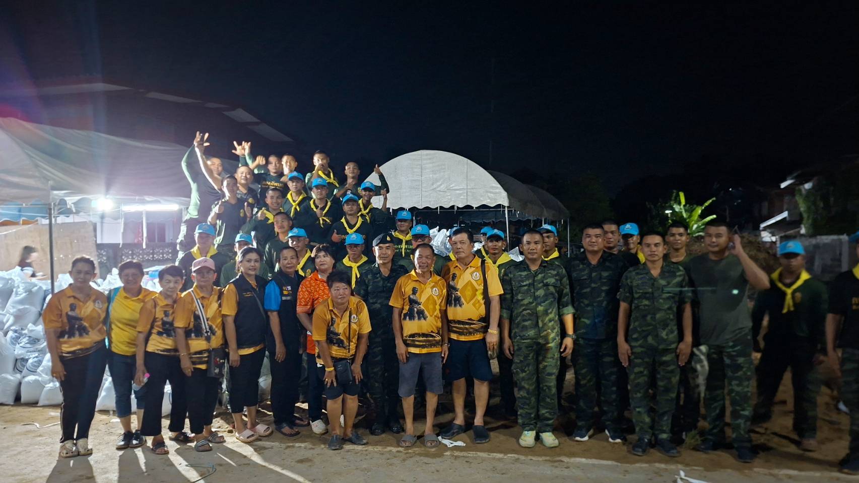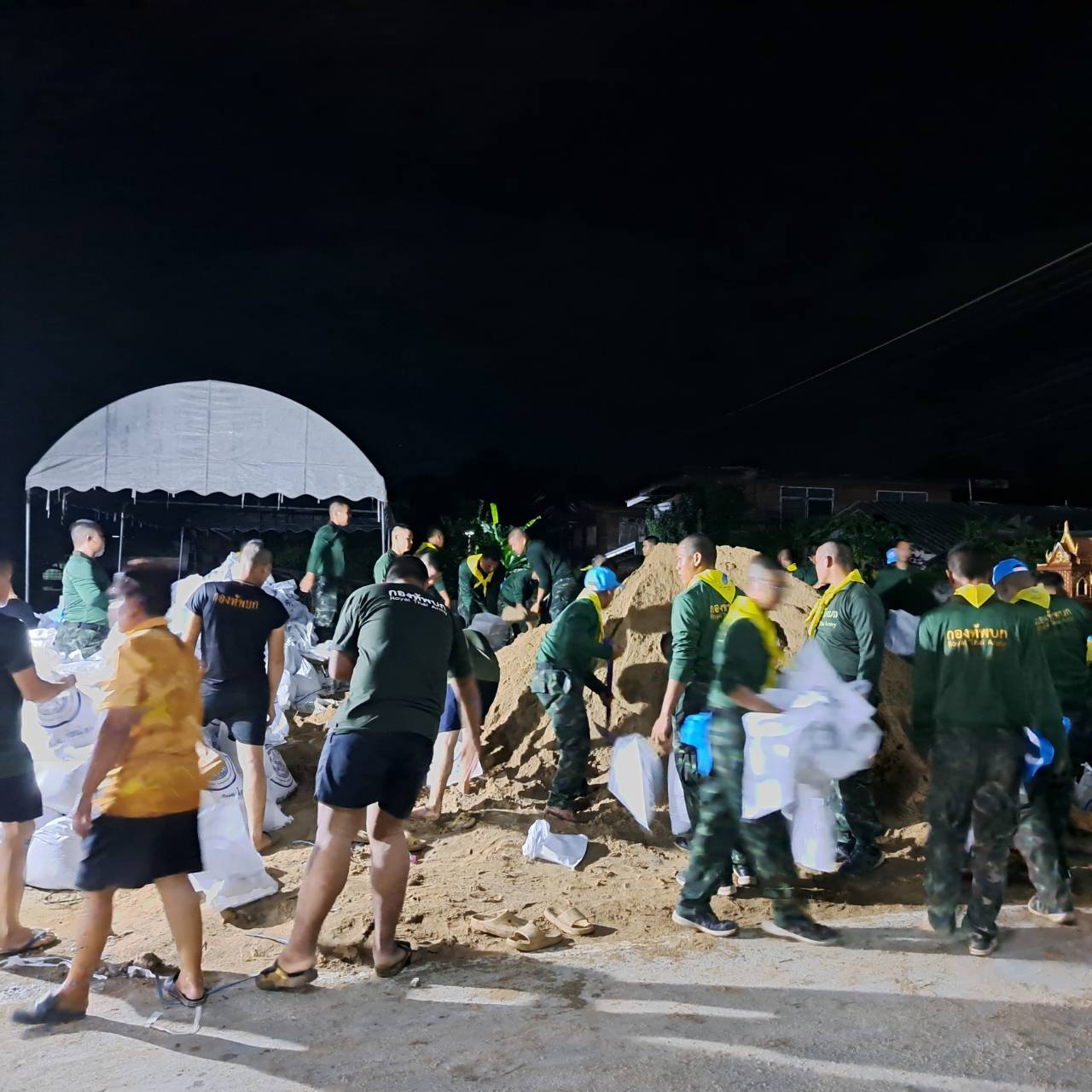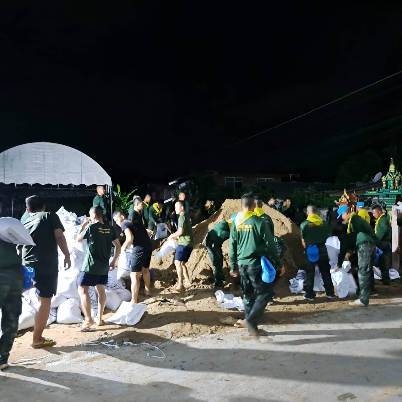 กำลังพลได้ร่วมกับประชาชนในพื้นที่ดำเนินการบรรจุกระสอบทราย เพื่อจัดทำแนวป้องกันน้ำล้นตลิ่ง ซึ่งขณะนี้ระดับน้ำเหลือเพียงประมาณ 50 เซนติเมตรจะล้นตลิ่ง ส่งผลให้ประชาชนเกิดความกังวลต่อสถานการณ์ที่อาจทวีความรุนแรงมากขึ้น