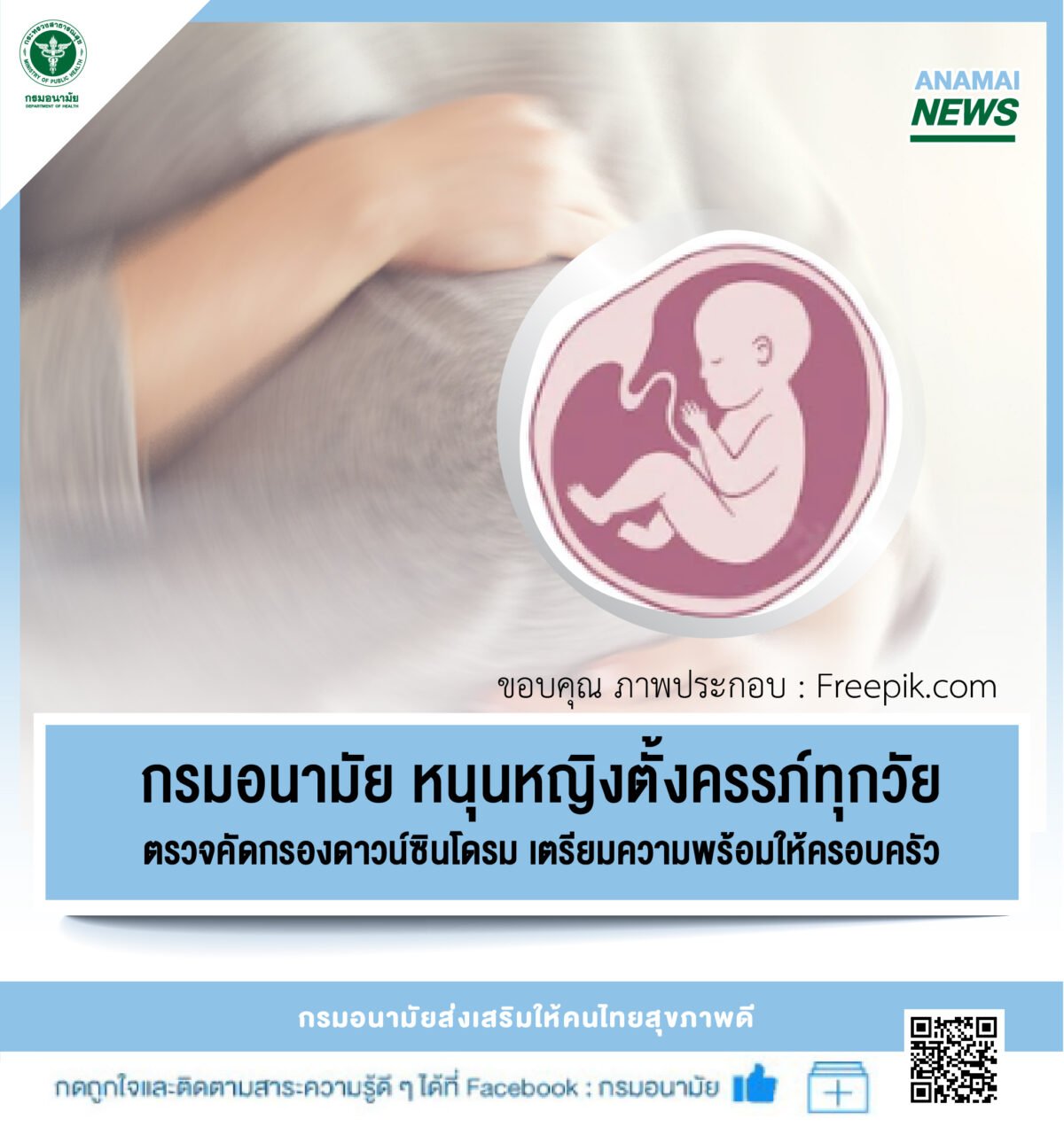กรมอนามัย กระทรวงสาธารณสุข สนับสนุนให้หญิงตั้งครรภ์ทุกอายุ ทุกสิทธิ์ เข้ารับการตรวจคัดกรองทารกกลุ่มอาการดาวน์ เพื่อเป็นการเตรียมความพร้อมให้แก่ครอบครัว