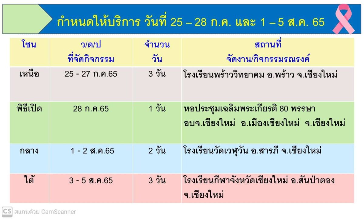 จังหวัดเชียงใหม่ ขอเชิญชวนสตรีกลุ่มเสี่ยงและด้อยโอกาส เข้าร่วมโครงการคัดกรองมะเร็งเต้านม