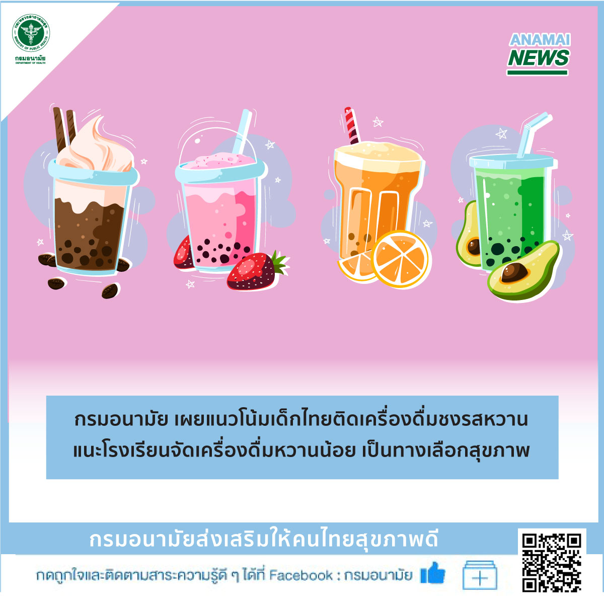 กรมอนามัย เผยแนวโน้มเด็กไทยติดเครื่องดื่มชงรสหวาน แนะโรงเรียนจัดเครื่องดื่มหวานน้อย เป็นทางเลือกสุขภาพ