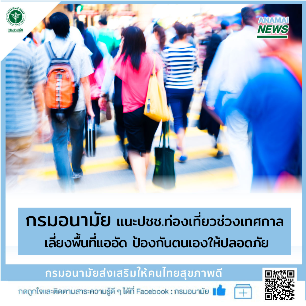 กรมอนามัย แนะ ปชช. ท่องเที่ยวช่วงเทศกาล เลี่ยงพื้นที่แออัด ป้องกันตนเองให้ปลอดภัย