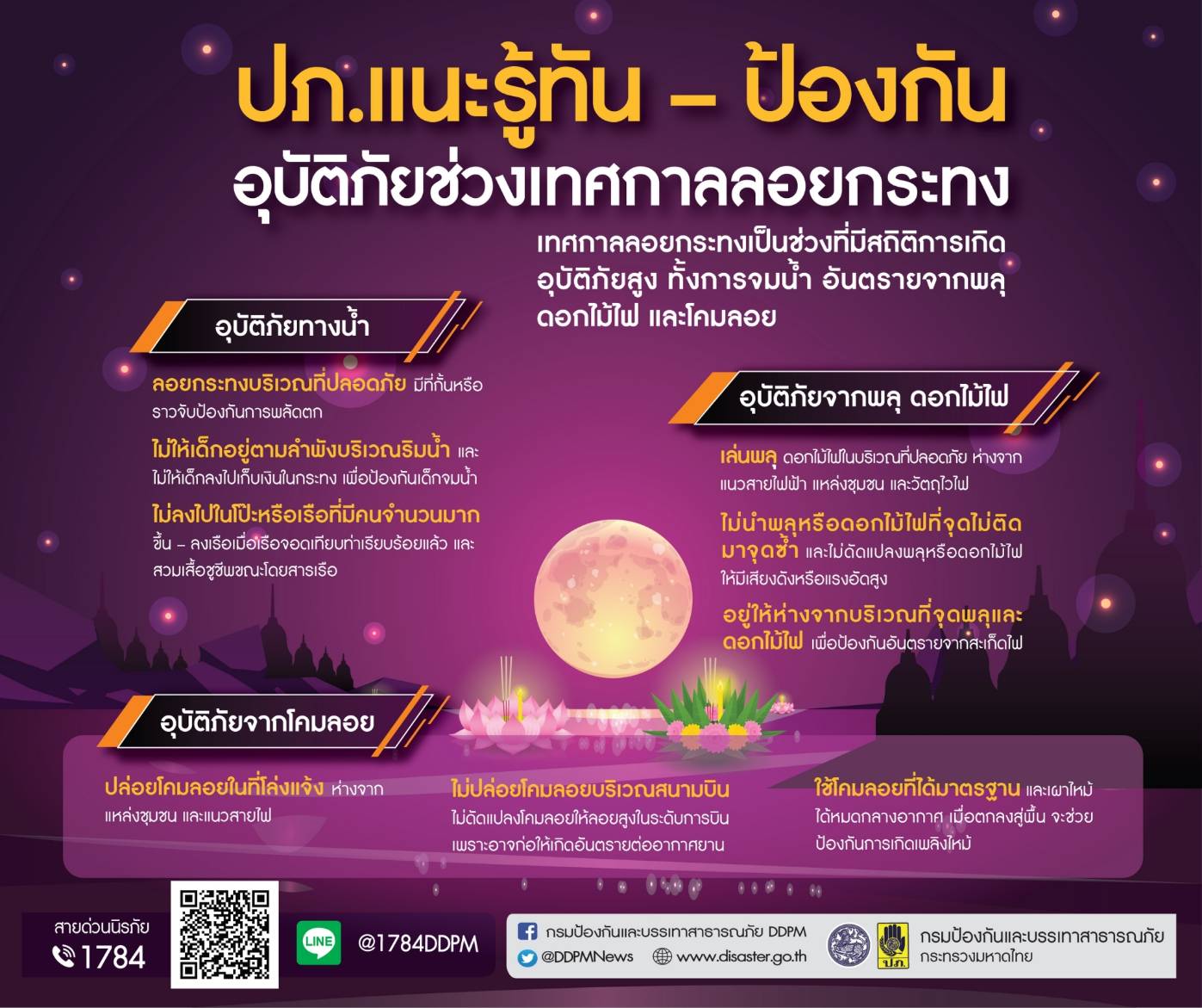 ปภ.แนะประชาชนเพิ่มความระมัดระวัง ในช่วงเทศกาลลอยกระทง-ลดเสี่ยงอันตราย