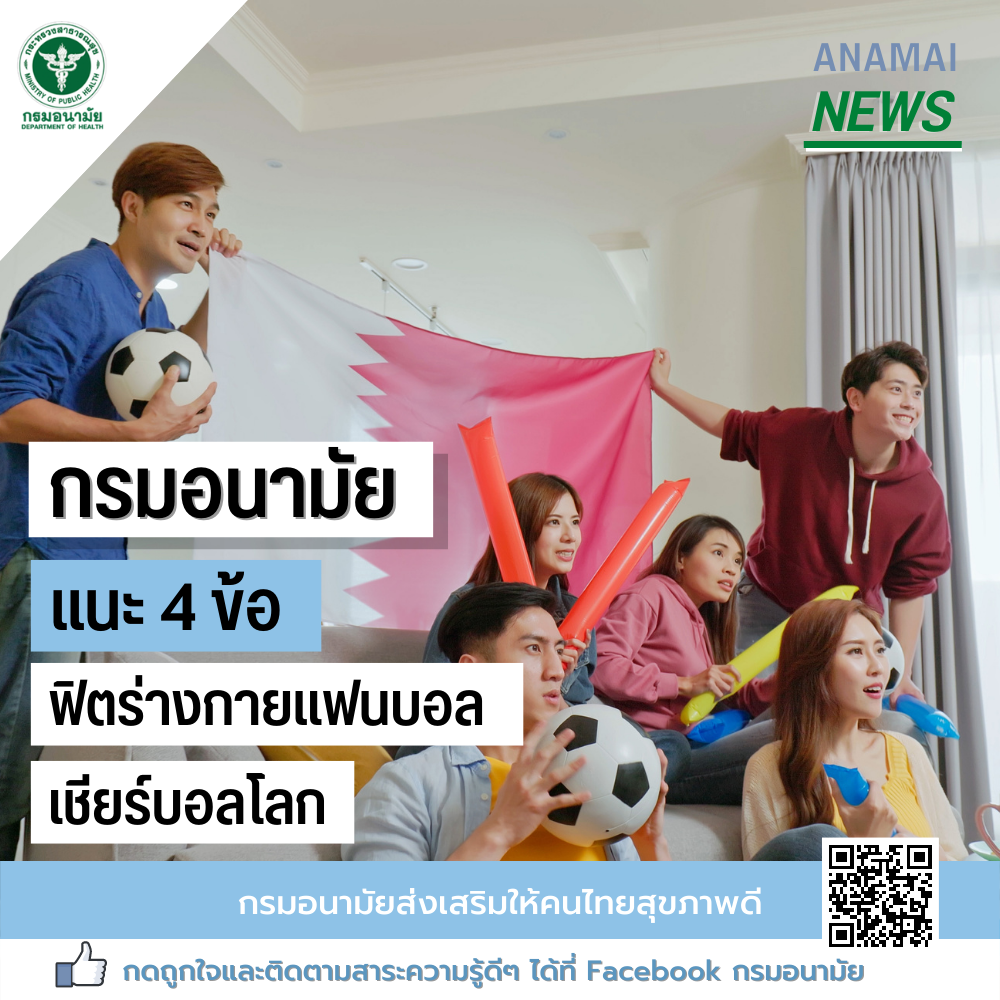 กรมอนามัย กระทรวงสาธารณสุข แนะนำเหล่าแฟนบอลฟิตร่างกายให้พร้อมในช่วงฟุตบอลโลก 2022
