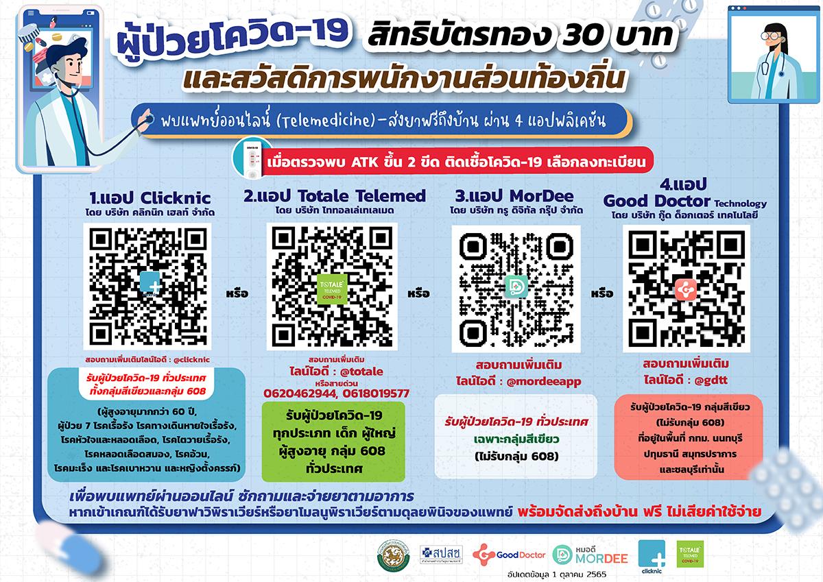 ผู้ป่วยโควิด-19 “สิทธิบัตรทอง 30 บาท และสวัสดิการพนักงานส่วนท้องถิ่น” พบแพทย์ Telemedicine-ส่งยาฟรีถึงบ้าน ผ่าน 4 แอปพลิเคชัน