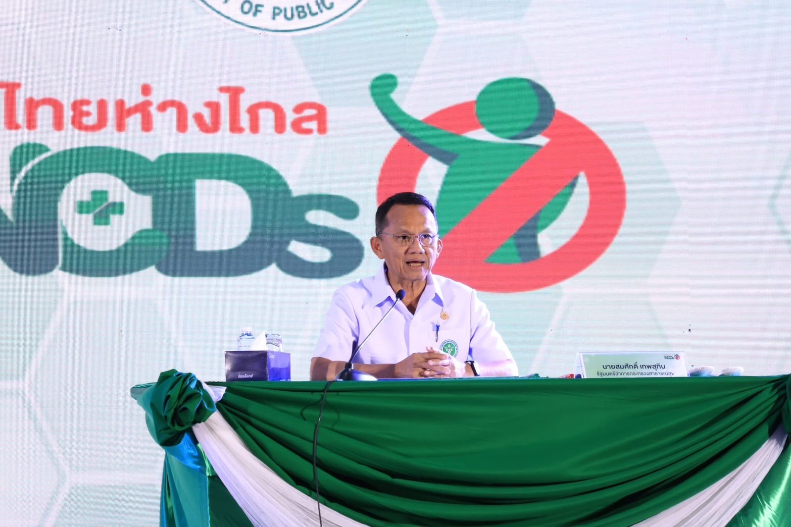 วันที่ 22 พฤศจิกายน 2567 ที่ศาลาประชาคมอ่าวอุดม อำเภอศรีราชา จังหวัดชลบุรี นายสมศักดิ์ เทพสุทิน รัฐมนตรีว่าการกระทรวงสาธารณสุข พร้อมด้วย นายแพทย์วีรวุฒิ อิ่มสำราญ รองปลัดกระทรวงสาธารณสุข เปิดกิจกรรมการขับเคลื่อนนโยบายคนไทยห่างไกลโรคไม่ติดต่อเรื้อรัง (NCDs) ครั้งที่ 4 โดยมี ผู้บริหารจากส่วนกลางและส่วนภูมิภาคในเขตสุขภาพที่ 4 และ 6 องค์กรปกครองส่วนท้องถิ่น อาสาสมัครสาธารณสุข เข้าร่วมงานจำนวน 1,200 คน รวมถึงมีผู้เข้าร่วมงานในระบบออนไลน์ 131,200 คน