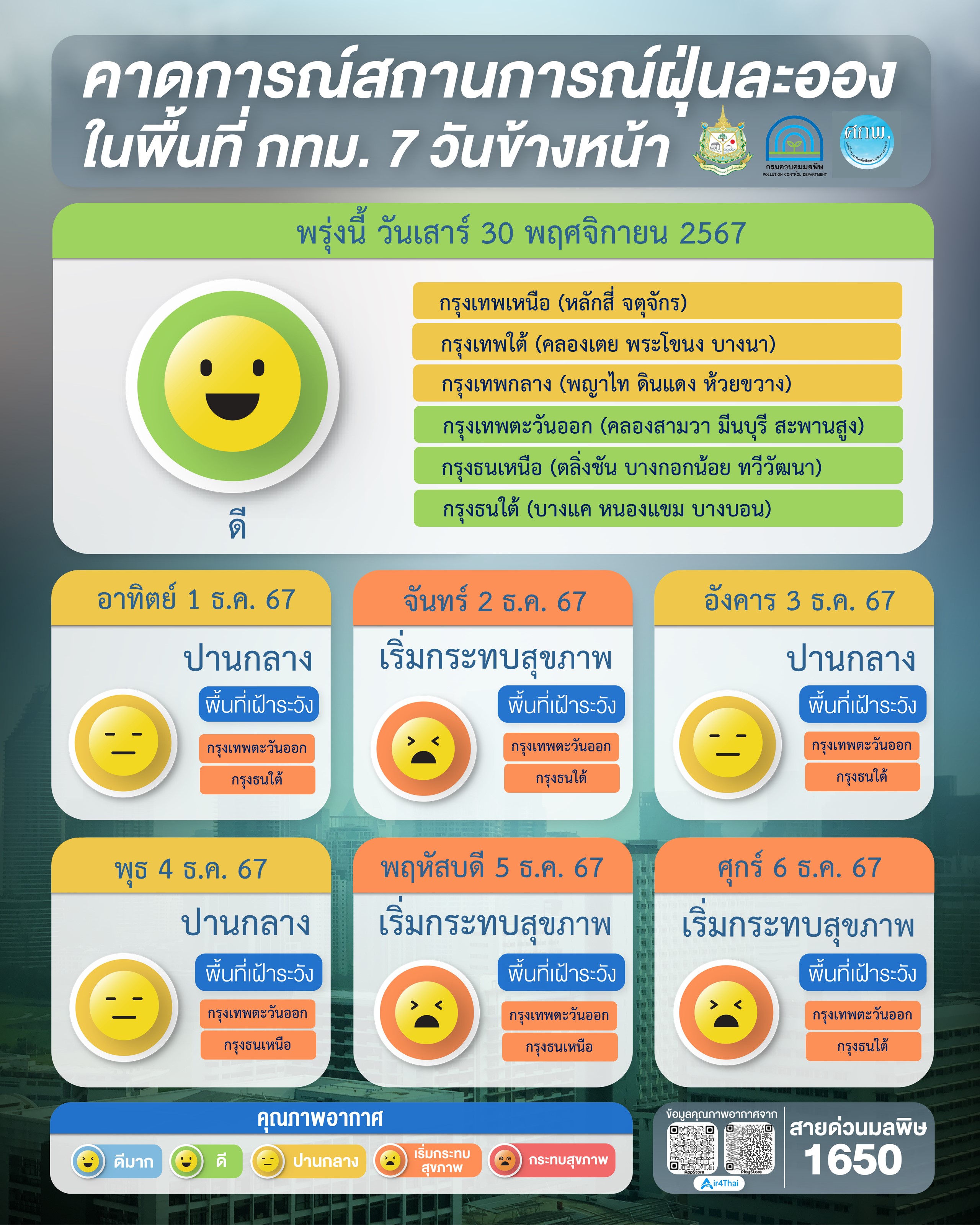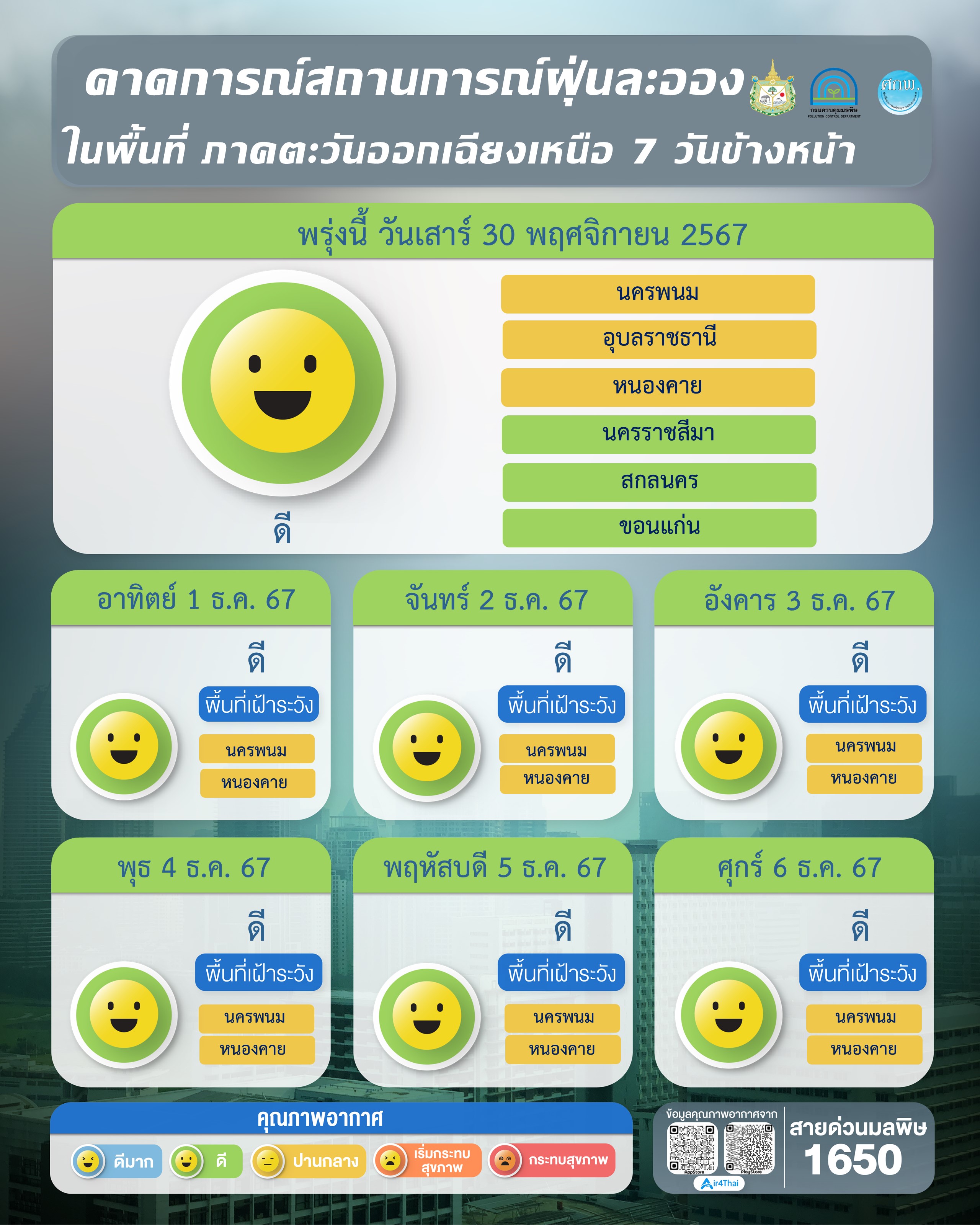 ภาคเหนือ ภาพรวมอยู่ในเกณฑ์ดี ตรวจวัดได้ 7.2 – 30.7 มคก./ลบ.ม.
