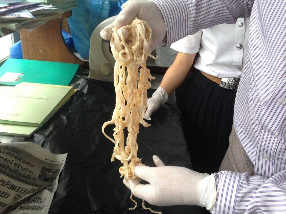 วันนี้ (4 สิงหาคม 2565 ) นายแพทย์โอภาส การย์กวินพงศ์ อธิบดีกรมควบคุมโรค กล่าวว่า จากกระแสสังคมบนโลกโซเชียลมีเดีย ได้รีวิวการกินและวิธีการทำที่ชวนให้น่าลิ้มลอง เมนูนิยม ในการรับประทานอาหารประเภทเนื้อวัว-ควายสดๆ อาทิเช่น เนื้อวัวดิบ จิ้มแจ่ว ซอยจุ๊ ลาบดิบ ก้อย ซอยห่าง แหนมดิบ (อาหารอีสาน) ลาบดิบ ส้า จิ้นส้ม (อาหารเหนือ) มีการกล่าวอ้างว่าเป็นมรดกถ่ายทอดจากรุ่นสู่รุ่นจนกลายเป็นวัฒนธรรมการกินอันยิ่งใหญ่ระดับโลก อย่างไรก็ตามกรมควบคุมโรค ขอให้ข้อมูลเพื่อการเตือนภัยโรค สำหรับคนที่คิดอยากลองหรือคนที่ชอบความหวานของการกินลาบวัว-ควายดิบ ข้อมูลเตือนภัยโรคพยาธิที่พบบ่อย โรคพยาธิตัวตืดวัว-ควาย เกิดจากการกินตัวอ่อนพยาธิเรียกว่า เม็ดสาคูในเนื้อ ตัวอ่อนเจริญเป็นตัวเต็มวัยในลำไส้ รูปร่างคล้ายก๋วยเตี๋ยวเส้นใหญ่ยาว 5-10 เมตร อาจยาว 25 เมตร มี 1,000-2,000 ปล้อง ปล้องสุกจะหลุดออกมา 3-4 ปล้องกับอุจจาระ หรือคืบคลานออกจากทวารหนักในแต่ละวัน อายุอยู่ในลำไส้คน 10-25 ปี พยาธิจะแย่งอาหารในลำไส้ คนติดโรคจะมีอาการหิวบ่อย ปวดบริเวณลิ้นปี่ ไม่สบายท้อง อาหารไม่ย่อย คลื่นไส้ อาเจียน บางครั้งท้องร่วง ท้องผูก น้ำหนักตัวลดลง ปล้องสุกที่หลุดออกมาอาจเข้าไปไส้ติ่ง ทำให้ไส้ติ่งอักเสบได้