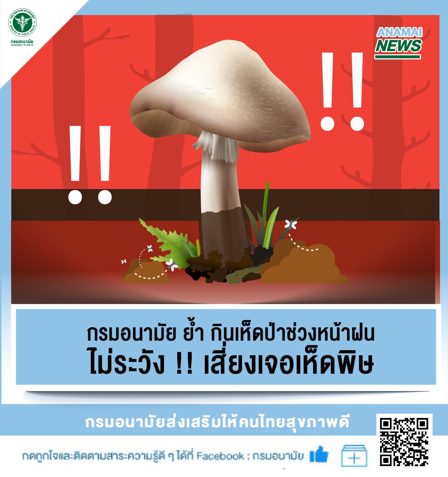 กรมอนามัย กระทรวงสาธารณสุข ย้ำกินเห็ดป่าช่วงหน้าฝน เน้นกินเห็ดที่คุ้นเคย ได้คุณค่าทางโภชนาการ หลีกเลี่ยงเก็บ ซื้อ กินเห็ดที่ไม่รู้จัก อาจมีพิษอันตรายถึงชีวิต พร้อมวิธีปฐมพยาบาลเบื้องต้น