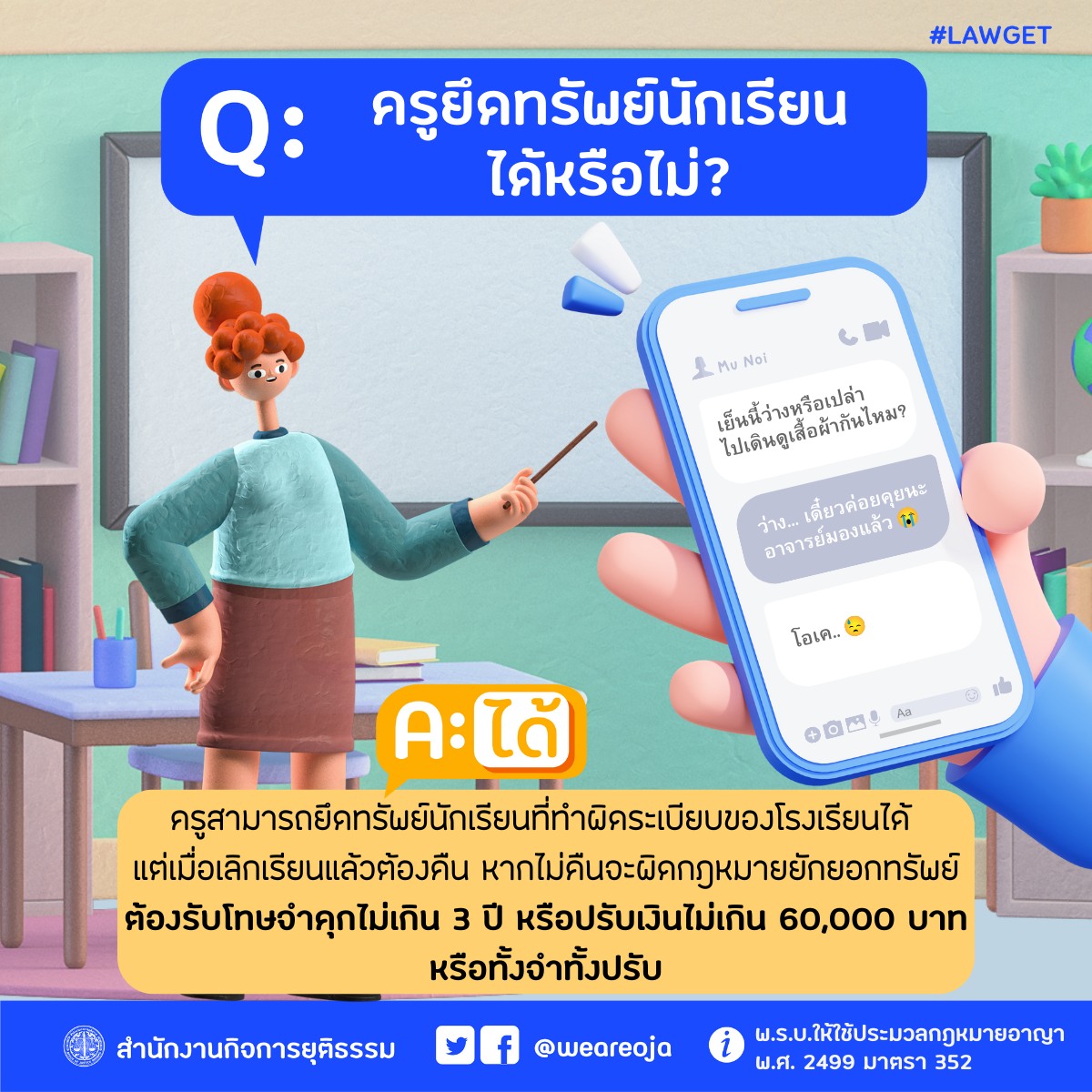 19 ก.ย. 65 สำนักงานกิจการยุติธรรม ไขข้อข้องใจครูยึดทรัพย์นักเรียนได้หรือไม่?