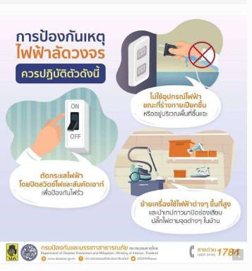 กระทรวงมหาดไทย โดยกรมป้องกันและบรรเทาสาธารณภัย (ปภ.) ขอแนะข้อควรปฏิบัติเพื่อป้องกันอุบัติภัยจากไฟฟ้า ดังนี้