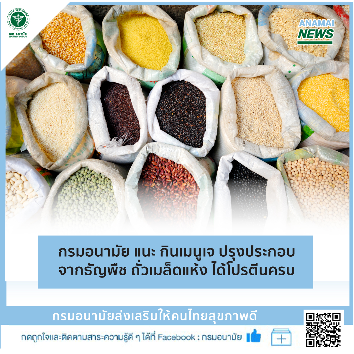 กรมอนามัย แนะ กินเมนูเจปรุงประกอบจากธัญพืช ถั่วเมล็ดแห้ง ได้โปรตีนครบ