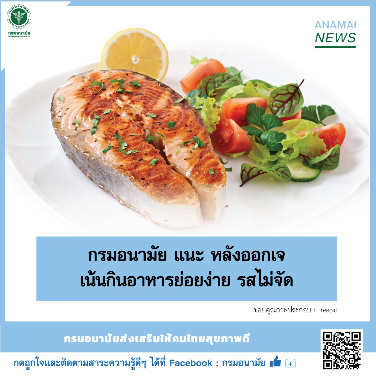 “ทั้งนี้ หลังจากออกเจ ถือเป็นโอกาสที่ดีในการปรับเปลี่ยนพฤติกรรมสุขภาพให้ดีขึ้น โดยกินอาหารที่มีประโยชน์ครบมื้อ แต่ละมื้อให้ครบ 5 หมู่ หลากหลายชนิดในปริมาณที่เหมาะสม กินข้าวและแป้งแต่พอดี ควรเลือกเป็นข้าวกล้อง ข้าวซ้อมมือ หรือธัญพืชไม่ขัดสี เนื้อสัตว์ไขมันต่ำ เช่น เนื้อปลา กินไข่ ถั่วเมล็ดแห้งต่าง ๆ เพิ่มผักใบเขียว และกินผลไม้ไม่หวานจัด เพื่อป้องกันไม่ให้ร่างกายได้รับพลังงานเกินความจำเป็น รวมทั้งดื่มนมรสจืดเป็นประจำ และดื่มน้ำสะอาดวันละ 8-10 แก้ว” อธิบดีกรมอนามัย กล่าว