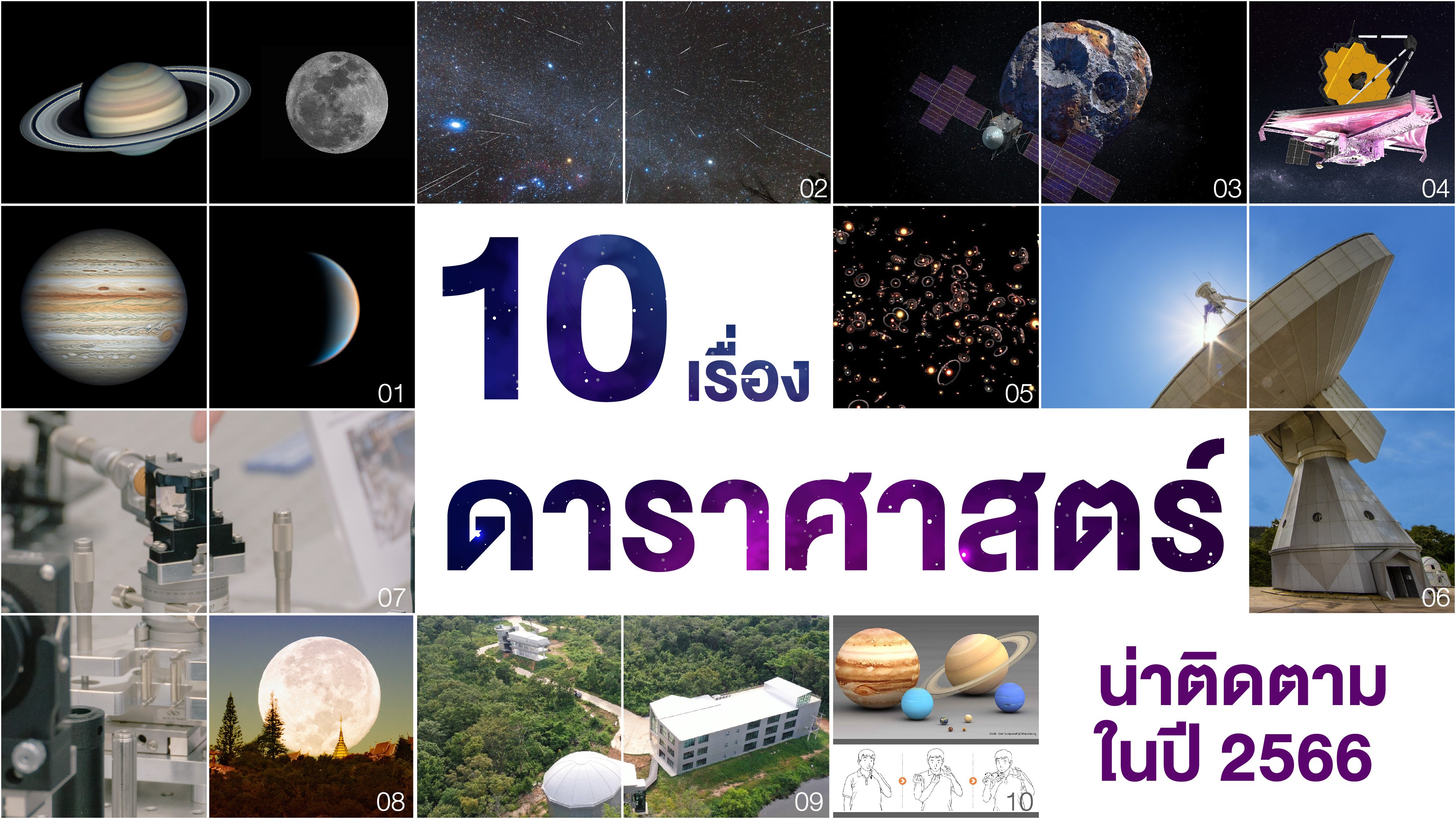 รองผู้อำนวยการสถาบันวิจัยดาราศาสตร์แห่งชาติ ร่วมกันแถลง 10 เรื่องดาราศาสตร์ที่น่าติดตามในปี 2566 ผ่านทางเฟสบุ๊กไลฟ์ของสถาบันวิจัยดาราศาสตร์แห่งชาติ เปิดเผยปรากฏการณ์ดาราศาสตร์สำคัญ อาทิ ดวงจันทร์เต็มดวง ใกล้โลกที่สุดในรอบปี และเป็นจันทร์เต็มดวงครั้งที่ 2 ของเดือน หรือที่เรียกกันว่า Super Blue Moon ดวงจันทร์ บังดาวศุกร์ ฝนดาวตกเจมินิดส์ ฯลฯ ชวนเกาะกระแสดาราศาสตร์โลกในปีหน้ากับโปรเจคสำรวจระบบสุริยะของหลายประเทศ จับตาการค้นพบใหม่จากกล้องโทรทรรศน์อวกาศเจมส์ เว็บบ์ ผลงานวิจัยของนักดาราศาสตร์ไทยที่โดดเด่นในระดับนานาชาติ ที่สำคัญคือก้าวต่อไปของกล้องโทรทรรศน์วิทยุแห่งชาติที่จะยกระดับงานวิจัยของไทยให้ก้าวไป