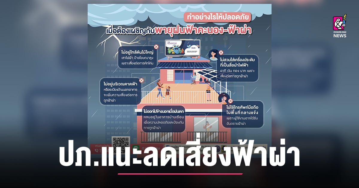 กรมป้องกันและบรรเทาสาธารณภัย (ปภ.) เปิดเผยว่า ระยะนี้หลายพื้นที่กำลังเผชิญกับสภาพอากาศแปรปรวน พายุฝนฟ้าคะนอง และลมกระโชกแรง สร้างความเสียหายต่อทรัพย์สินและก่อให้เกิดอันตรายต่อชีวิตได้ เพื่อความปลอดภัย กรมป้องกันและบรรเทาสาธารณภัย ขอแนะวิธีปฏิบัติเมื่อเกิดพายุฝนฟ้าคะนอง ดังนี้ ควรหลีกเลี่ยงการอยู่ที่โล่งแจ้ง ใต้ต้นไม้ใหญ่ ป้ายโฆษณา เสาไฟฟ้า หรือสิ่งปลูกสร้างที่ไม่แข็งแรง รวมถึงบริเวณดาดฟ้า มุมตึกหรือระเบียงด้านนอกอาคาร และไม่อยู่ในบริเวณที่เสี่ยงต่อการแตกหัก เพราะอาจได้รับบาดเจ็บได้ ไม่ถือวัสดุที่เป็นสื่อนำไฟฟ้าในระดับเหนือศีรษะ เช่น ร่มที่มียอดเป็นโลหะ คันเบ็ด จอบเสียม ไม้กอล์ฟ เป็นต้น งดใช้เครื่องมือสื่อสารและอุปกรณ์อิเล็กทรอนิกส์ทุกประเภท หากฟ้าผ่าจะเหนี่ยวนำกระแสไฟฟ้าจนเกิดความเสียหายและได้รับอันตราย