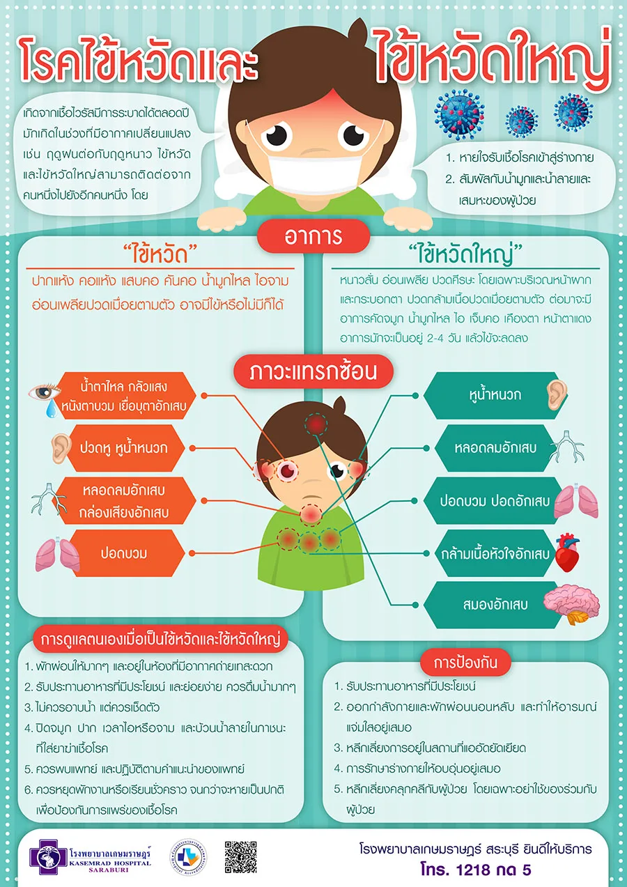 “โรคไข้หวัดใหญ่” เป็นโรคติดเชื้อไวรัสระบบทางเดินหายใจแบบเฉียบพลัน มีอาการรุนแรงกว่าไข้หวัดทั่วไป มักมีอาการไข้สูงเฉียบพลัน ปวดศีรษะ ปวดเมื่อยกล้ามเนื้อ อ่อนเพลีย ไอ และเจ็บคอ โดยเฉพาะในกลุ่มเสี่ยง อาจเกิดภาวะแทรกซ้อนรุนแรง เช่น ปอดอักเสบ จำเป็นต้องได้รับการดูแลรักษาอย่างเหมาะสมและทันท่วงที ติดต่อทางการหายใจ โดยจะได้รับเชื้อที่ปนเปื้อนอยู่ในอากาศเมื่อผู้ป่วยไอ จาม หรือพูด ในพื้นที่ที่มีคนอยู่รวมกันหนาแน่น เช่น โรงเรียน โรงงาน การแพร่เชื้อจะเกิดได้มาก นอกจากนี้การแพร่เชื้ออาจเกิด โดยการสัมผัสฝอยละอองน้ำมูก น้ำลายของผู้ป่วย หรือจากมือที่สัมผัสกับพื้นผิวที่มีเชื้อไวรัสไข้หวัดใหญ่ แล้วใช้มือสัมผัสที่จมูกและปาก